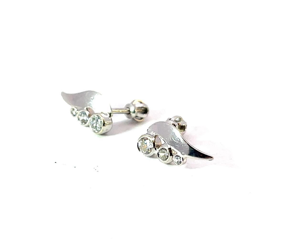 Náušnice z bílého zlata o ryzosti 585/1000, punc labuť. Váha 1,10 g, rozměr ozdoby 12 mm x 6 mm.