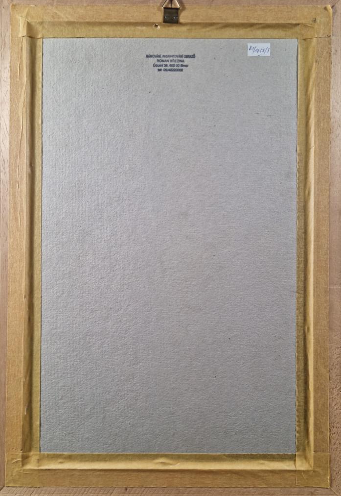 Kresba tuží na papíře, rozměr díla v paspartě 16 x 29 cm, rozměr s rámem 33 x 46 cm. Rámováno, zaskleno. Signováno v e spodní části "Neprakta".