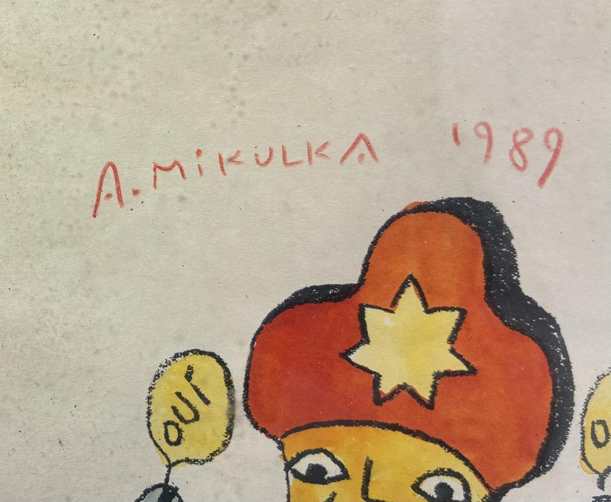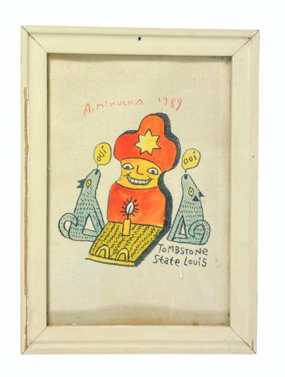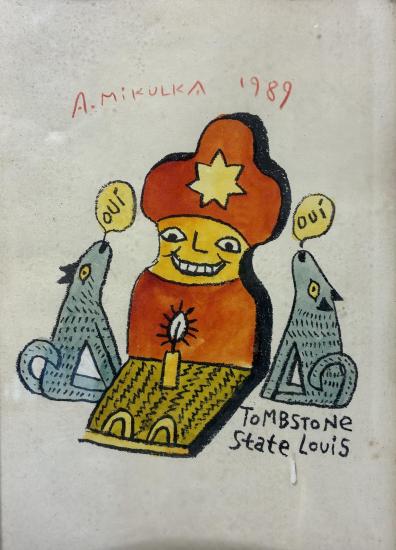 Kolorovaná grafika od Aloise Mikulky. Barevný linoryt na papíře s názvem Tombstone, State Louis. Zarámováno, pod sklem. Zadní strana chybí. Rám je lokálně poškozen( odloupnutá barva). Rozměry díla jsou 19,5 x 13 cm. Celkové rozměry s rámem jsou 17 x 23,5 cm. Signatura se nachází nahoře uprostřed: A. Mikulka 1989.