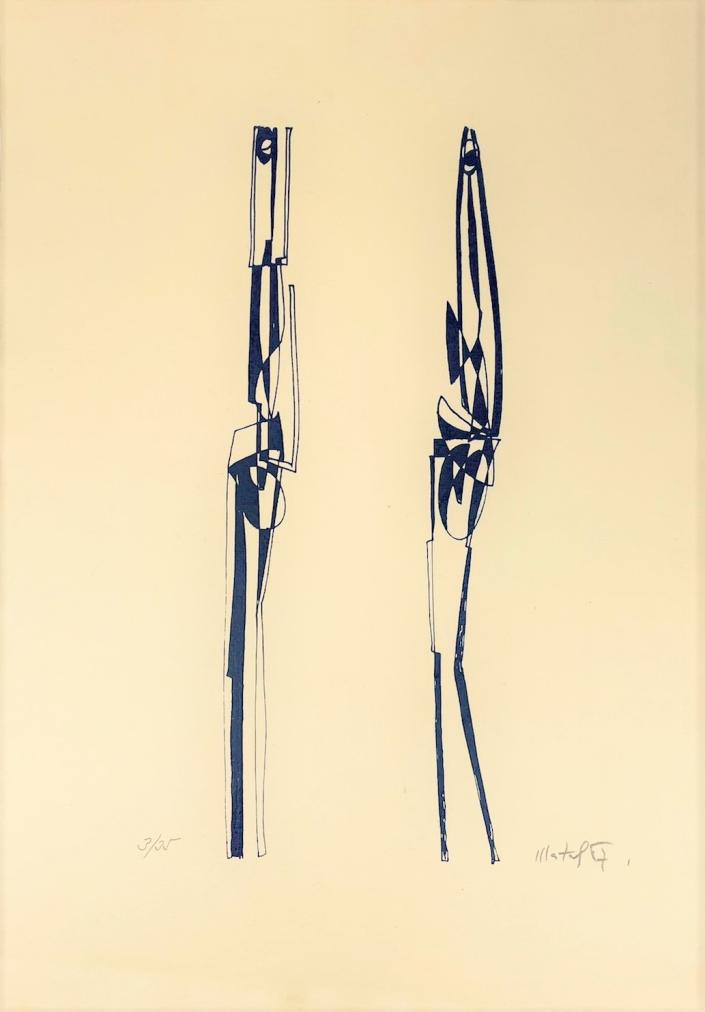 Rozměr díla 42 x 30 cm, bez rámu, kresba tuší na papíře, signováno v pravém dolním rohu "Matal 87"