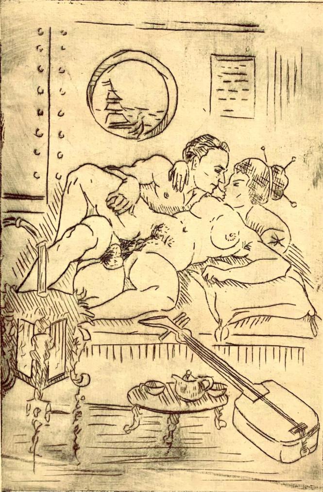 Suchá jehla na papíře o rozměrech 16 x13 cm, rozměr samotného díla 12 x 8 cm. Nesignováno.