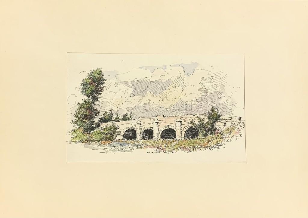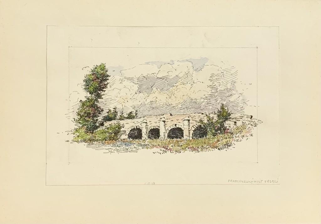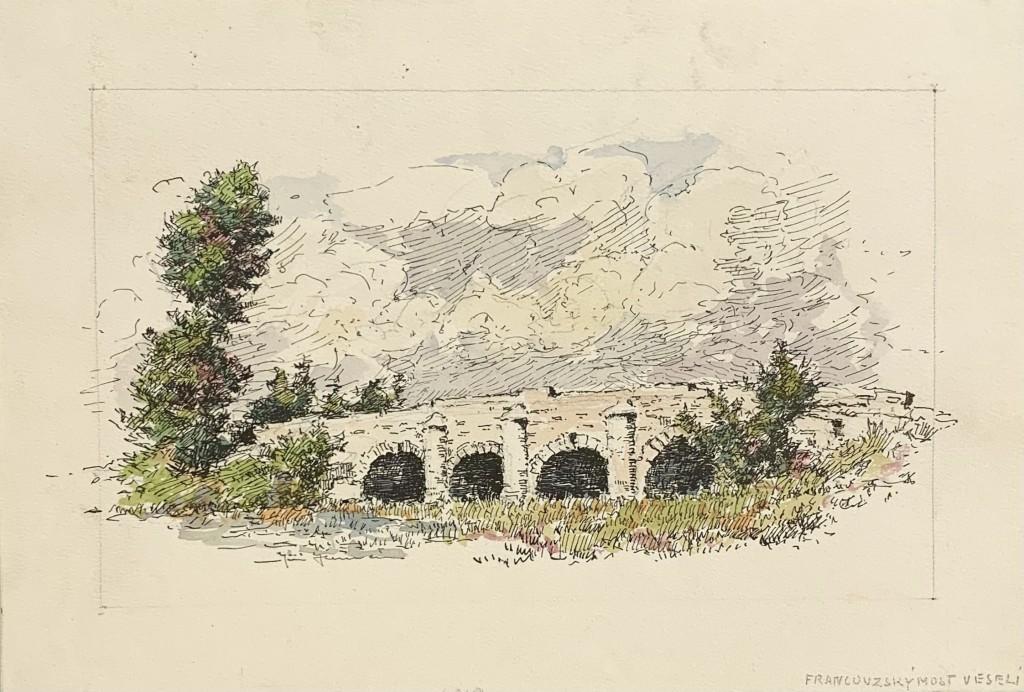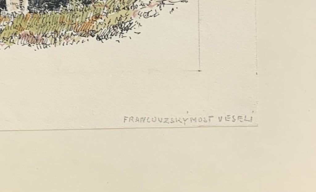 Kolorovaná kresba v paspartě o celkovém rozměru 31 x 22 cm, rozměr samotné kresby 15 x 22 cm. Signováno v levém dolním rohu "Jiří Heřman"