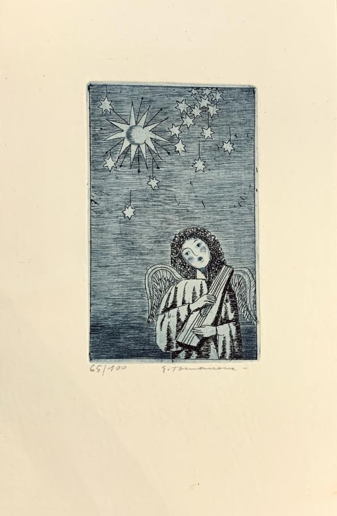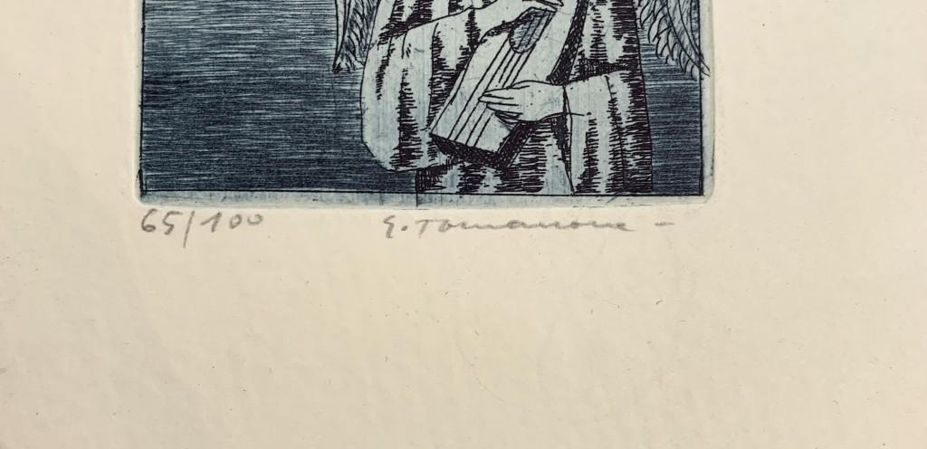 Volně ložený grafický list o rozměrech 22 x14 cm, rozměr grafiky 11,5 x 7,5 cm. Signováno "E. Tomanová"