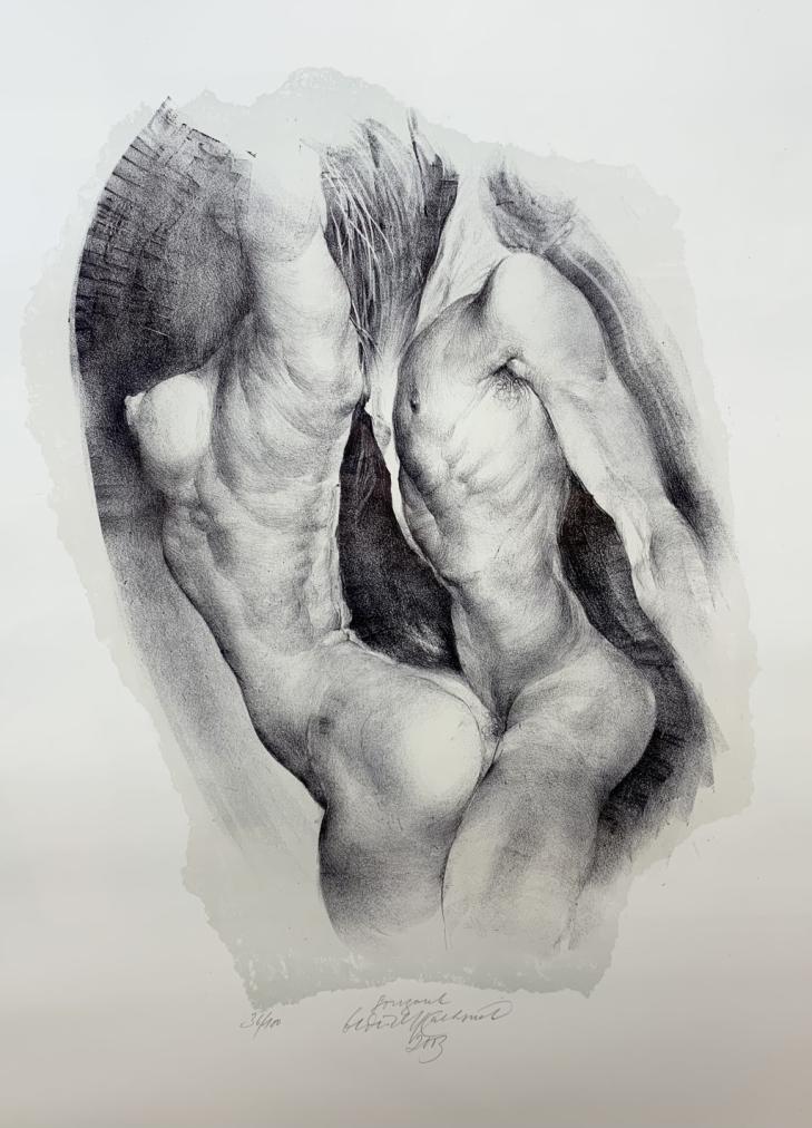 Litografie na papíře pod sklem o rozměrech tiskové plochy 28 x 38 cm, s rámem 51 x 68 cm. Signováno v dolním části "Kulhánek 2003"