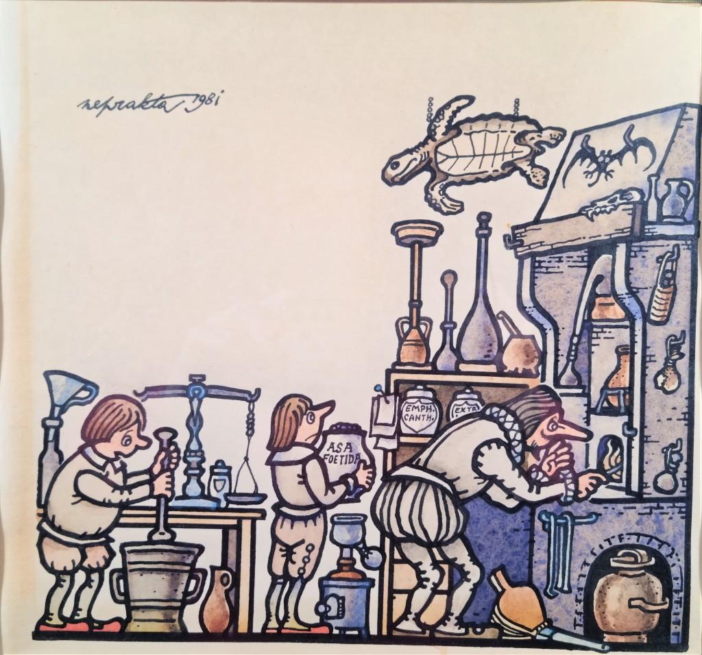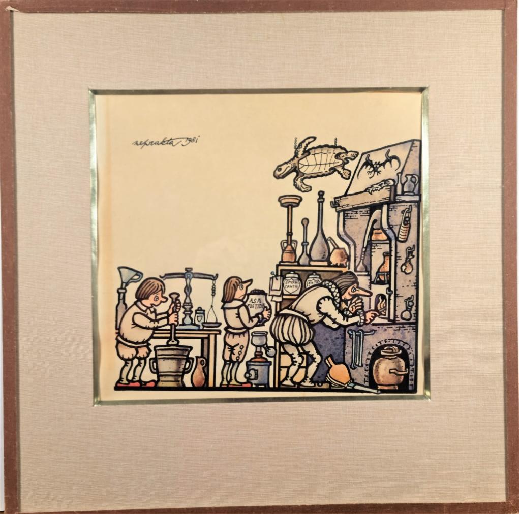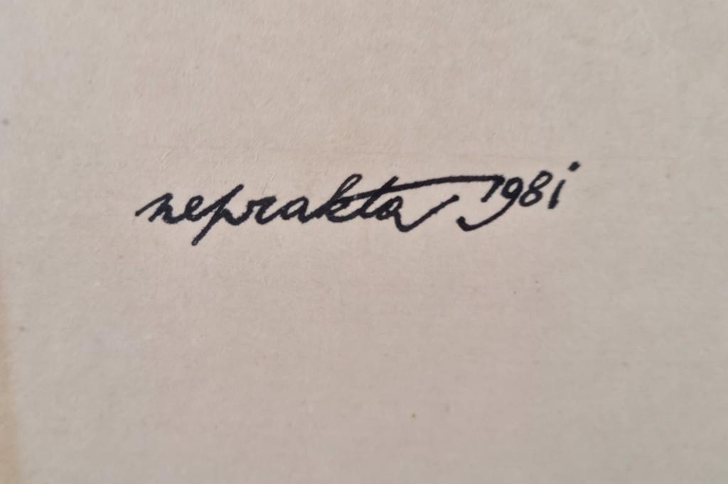Malba - kombinovaná technika (tuč, akvarel) na papíře, rozměr díla v paspatě 30 x 27 cm, rozměr i s rámem 46 x 46 cm. Rámováno, zaskleno, v levém horním rohu "Neprakta 1981".