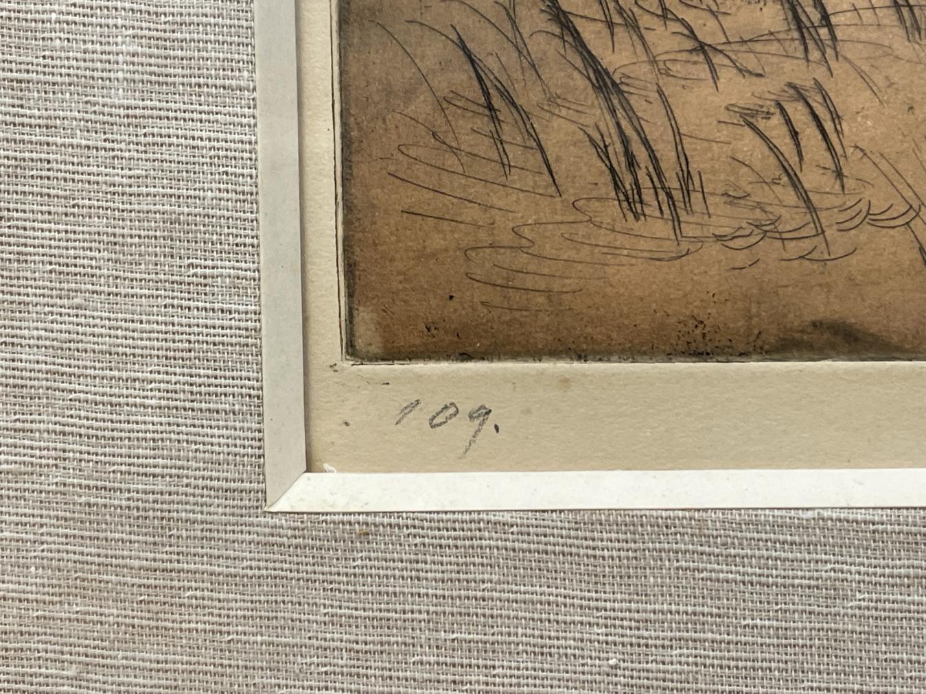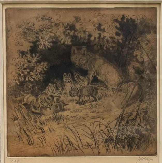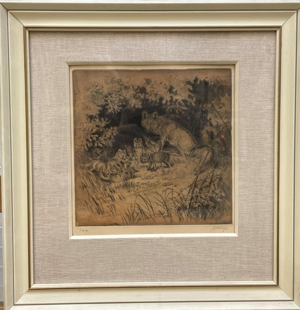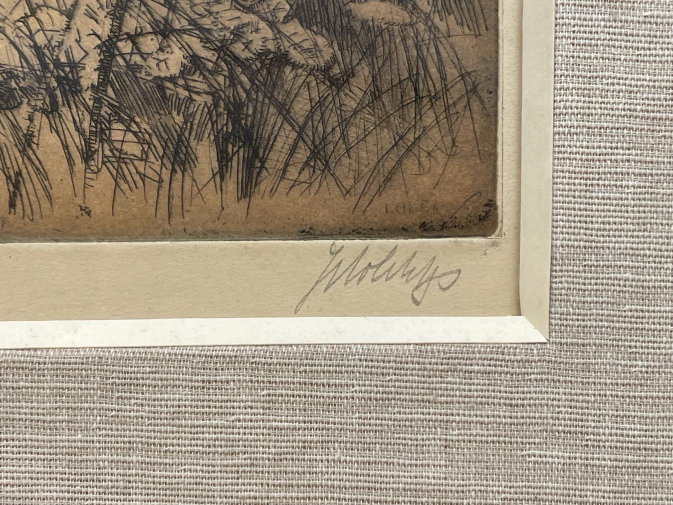 Technika suchá jehla: výška 24 cm, šířka 23 cm, včetně rámu výška 43 cm, šířka 41 cm. Signováno v pravém spodním rohu S.Lolek. Nalepeno na kartonu.