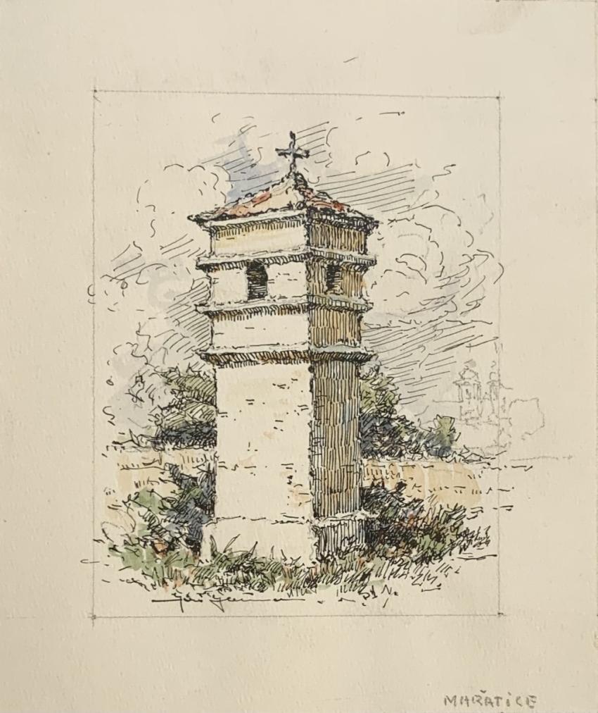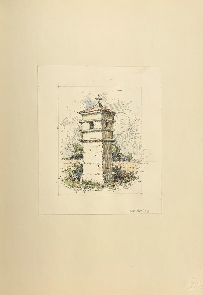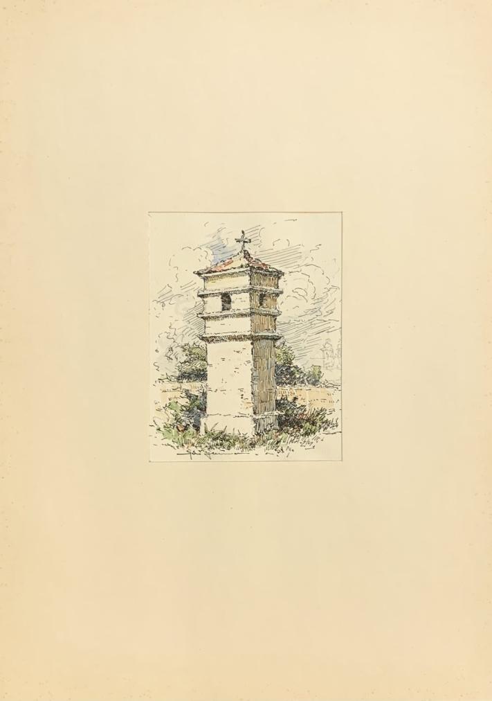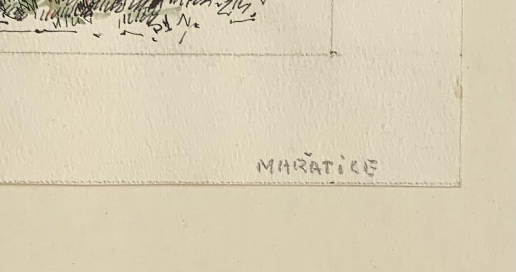 Kolorovaná kresba v paspartě o celkovém rozměru 31 x 22 cm, rozměr samotné kresby 16,5 x 12,5 cm. Signováno ve spodní části "Jiří Heřman"