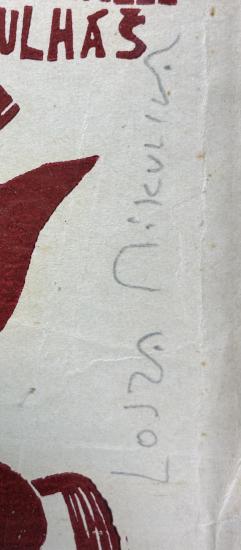 dřevoryt, červený tisk na papíře
