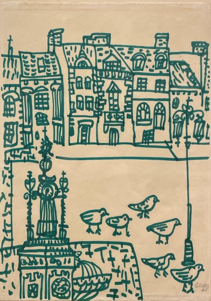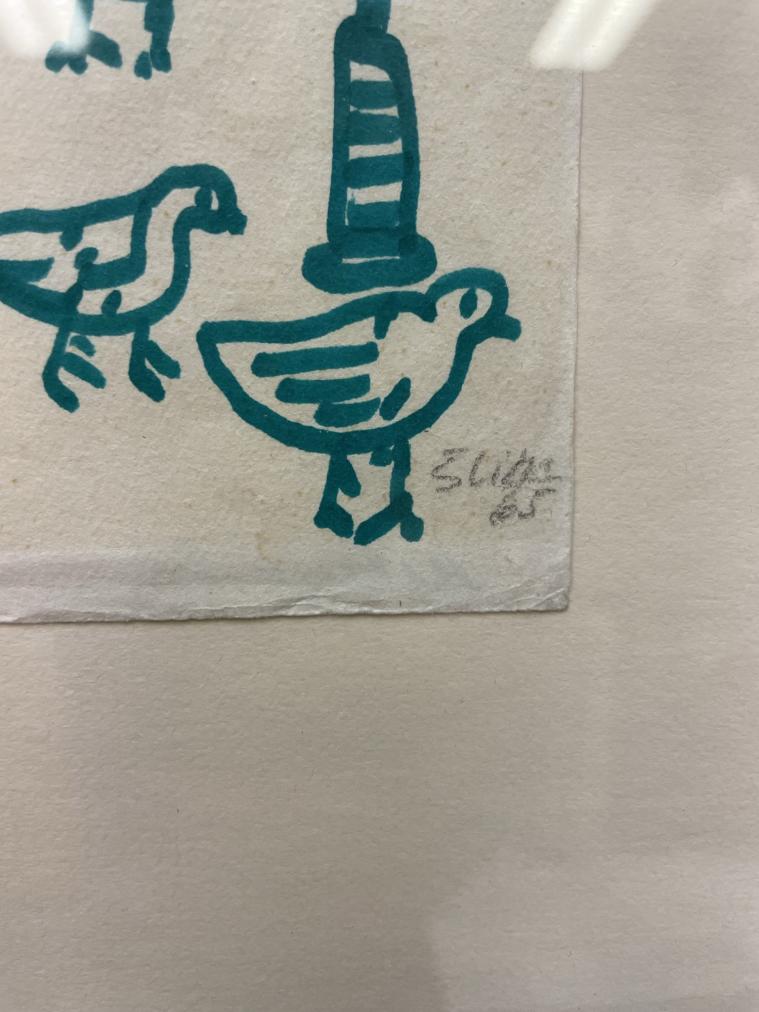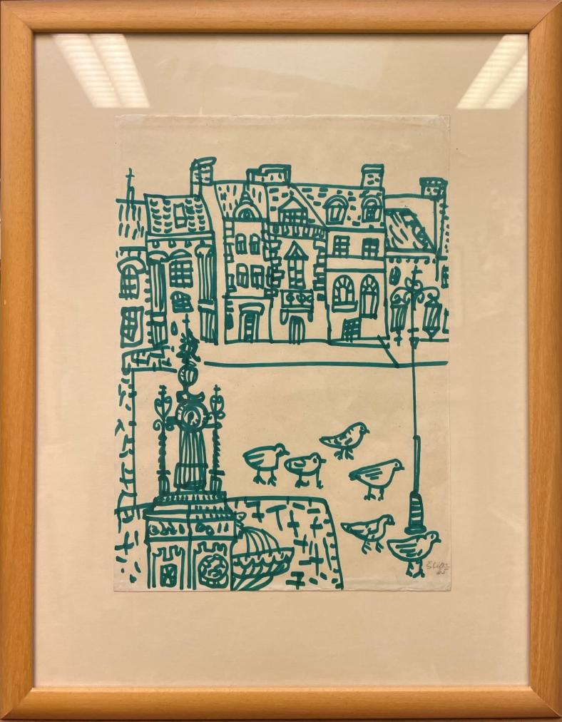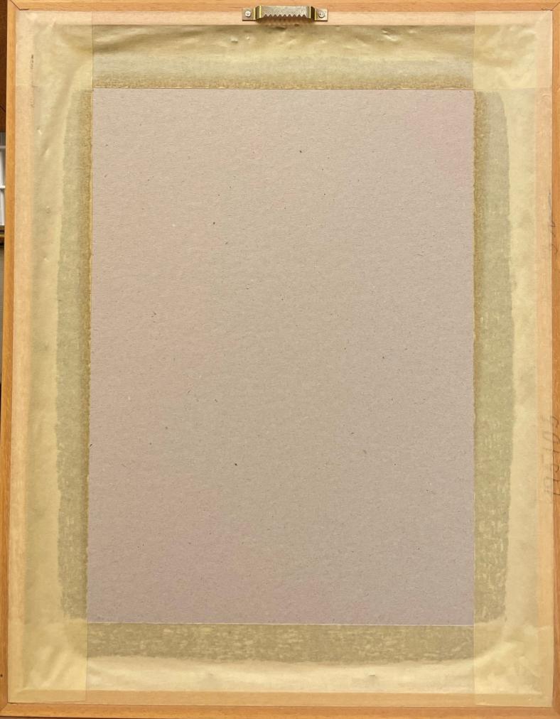 Fixa na papíře o rozměrech díla: výška 30 cm, šířka 21 cm, včetně rámu: výška 47 cm, šířka 36 cm. Signováno v pravém dolním rohu" Šlitr 65"