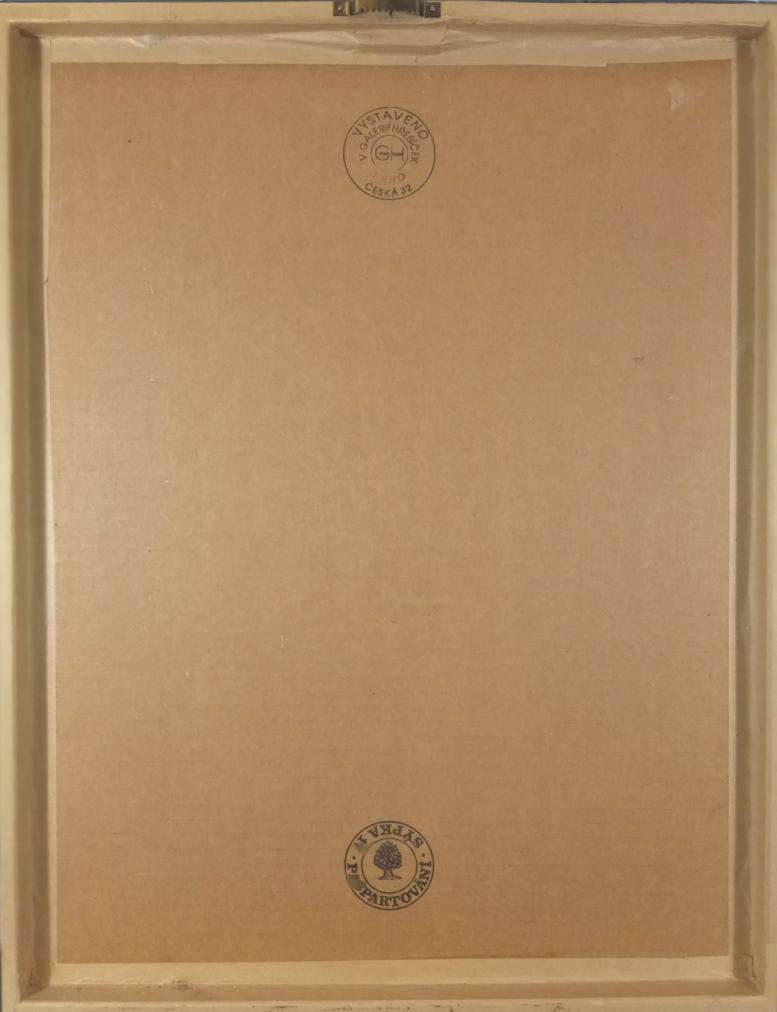 Rozměry rámu jsou 42 x 55 cm, rozměry obrazu jsou 22 x 31 cm.