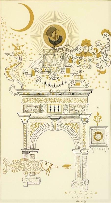 Rozměr díla 9 x 17 cm, rozměr listu 22 x 30,5 cm, grafika na papíře, signováno v pravém dolním rohu "Švengsbír" .