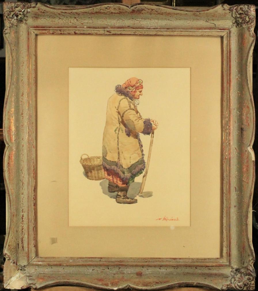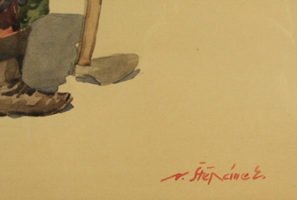 Akvarel na papíře v paspartě pod sklem, signováno Štěpánek, rám-jeden roh poškozen viz foto, rozměr malby 46 x 35 cm.