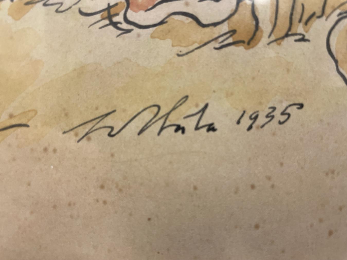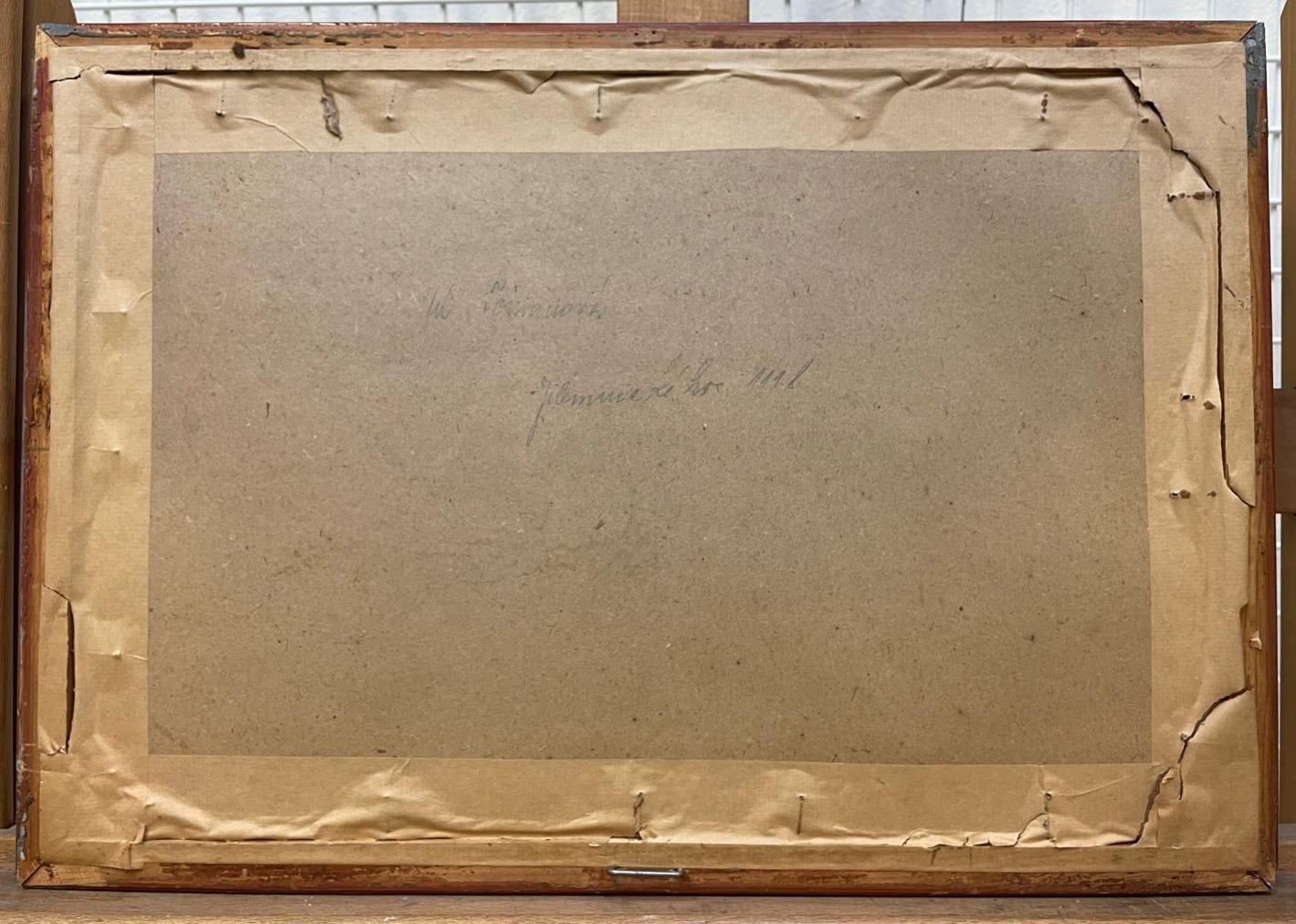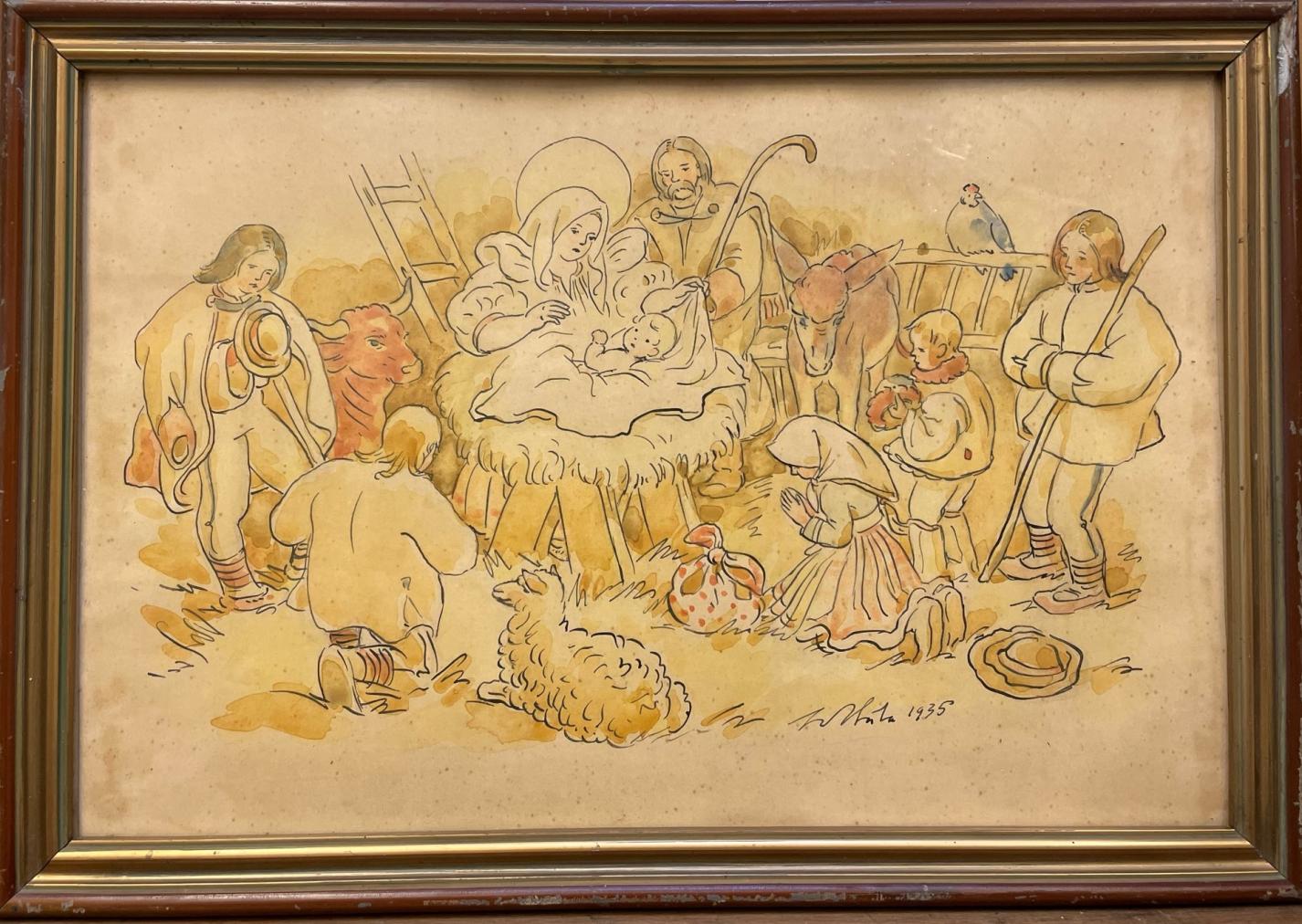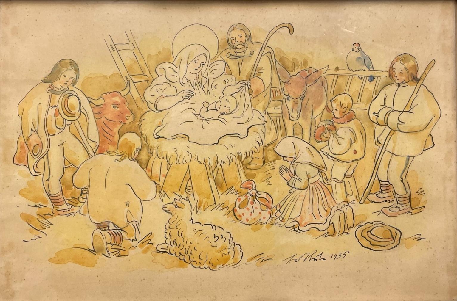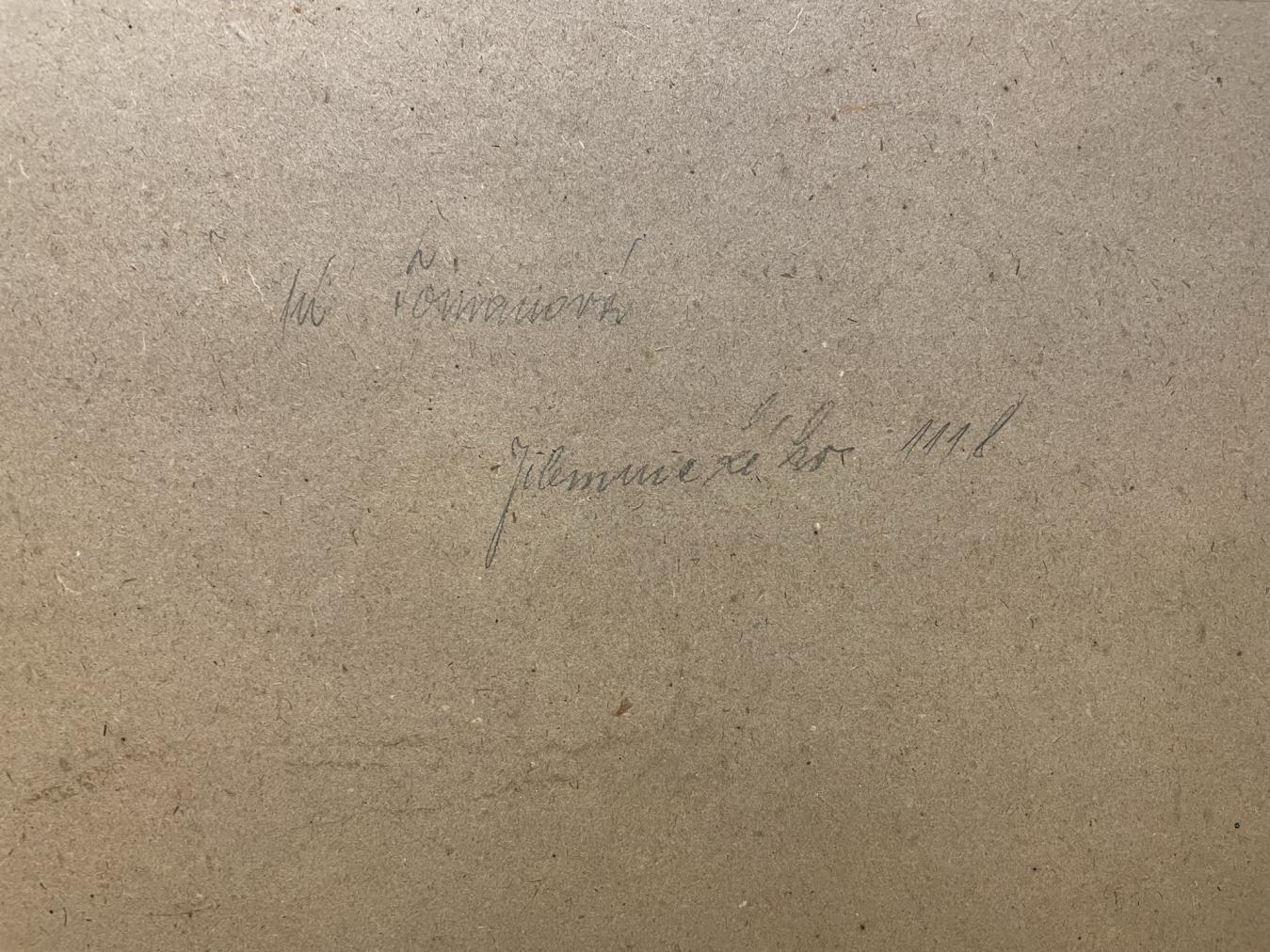 Kombinovaná technika na kartonu pod sklem o rozměrech: výška 28 cm, šířka 42 cm , včetně rámu výška 33 cm, šířka 47 cm. Signováno v pravém spodní části J. Hála 1935.