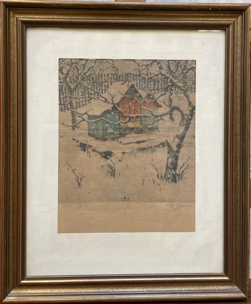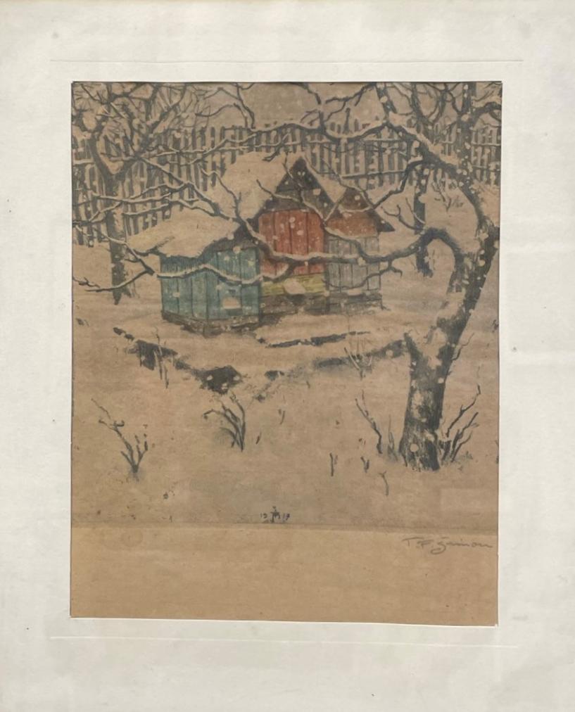 barevná akvatintka na papíru o rozměrech malby: výška 29 cm, šířka 23 cm , včetně rámu výška 49 cm, šířka 42 cm. Signováno v pravém spodním rohu T.F.Šimon.
