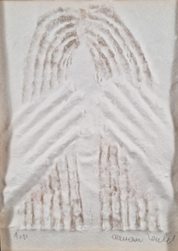 Slepotisk- reliéfní grafika, rozměr včetně rámu 45 x 38 cm, grafika 19 x 13 cm. Signováno Olbram Zoubek.