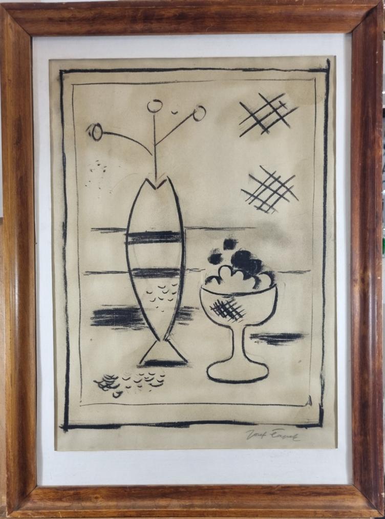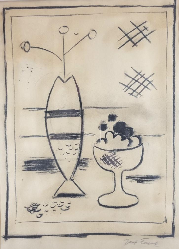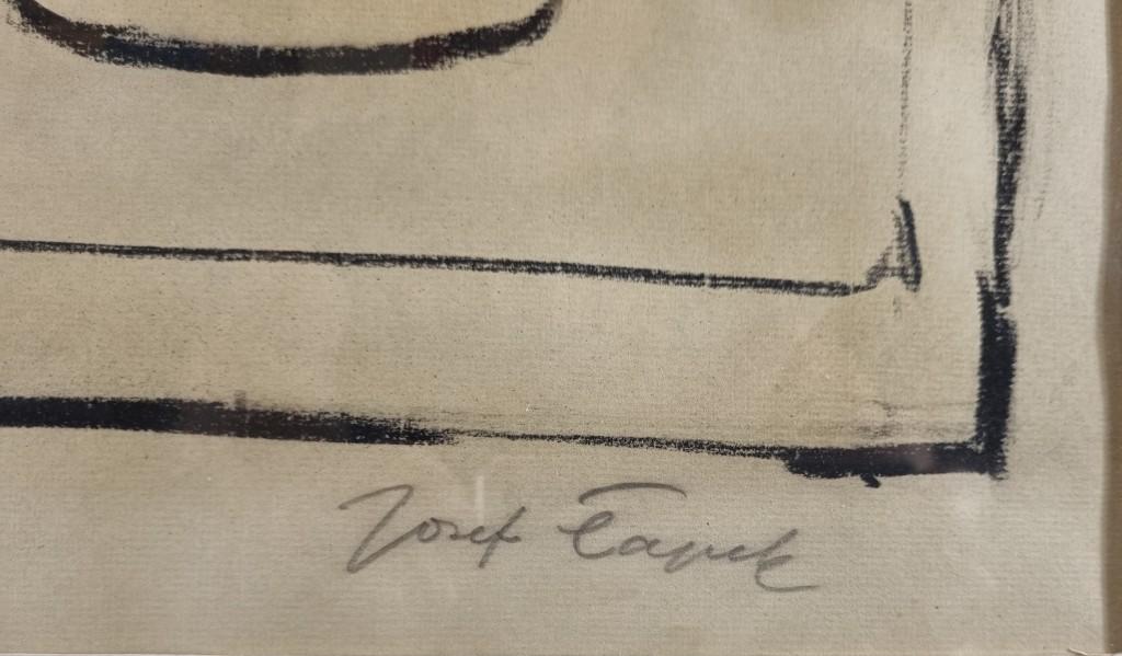 Kresba na papíře pod sklem, rozměry díla 44x60 cm, s rámem 56x77 cm. Signováno v pravém dolním rohu "Josef Čapek".