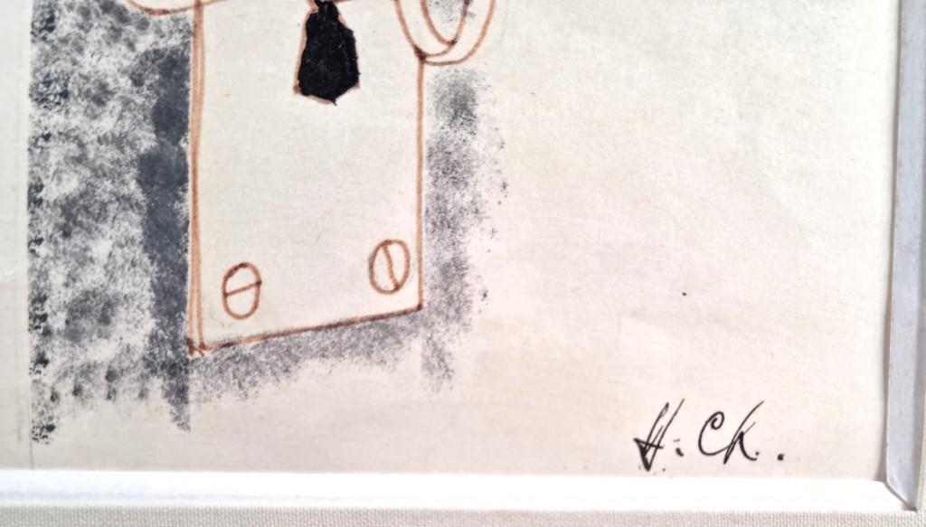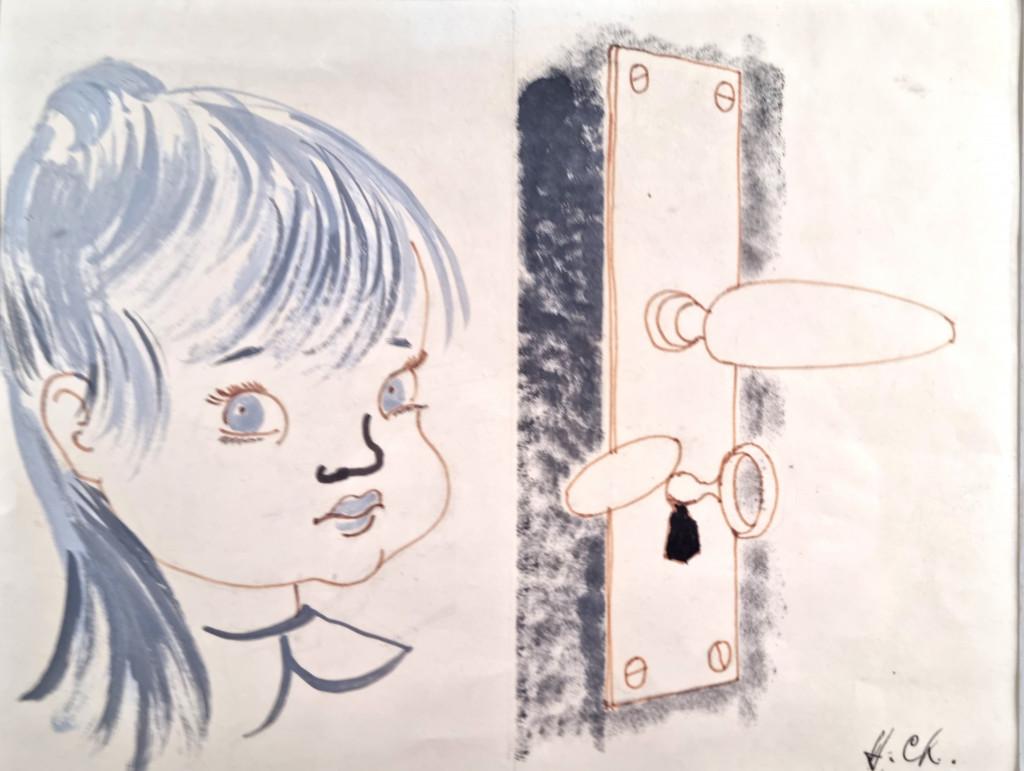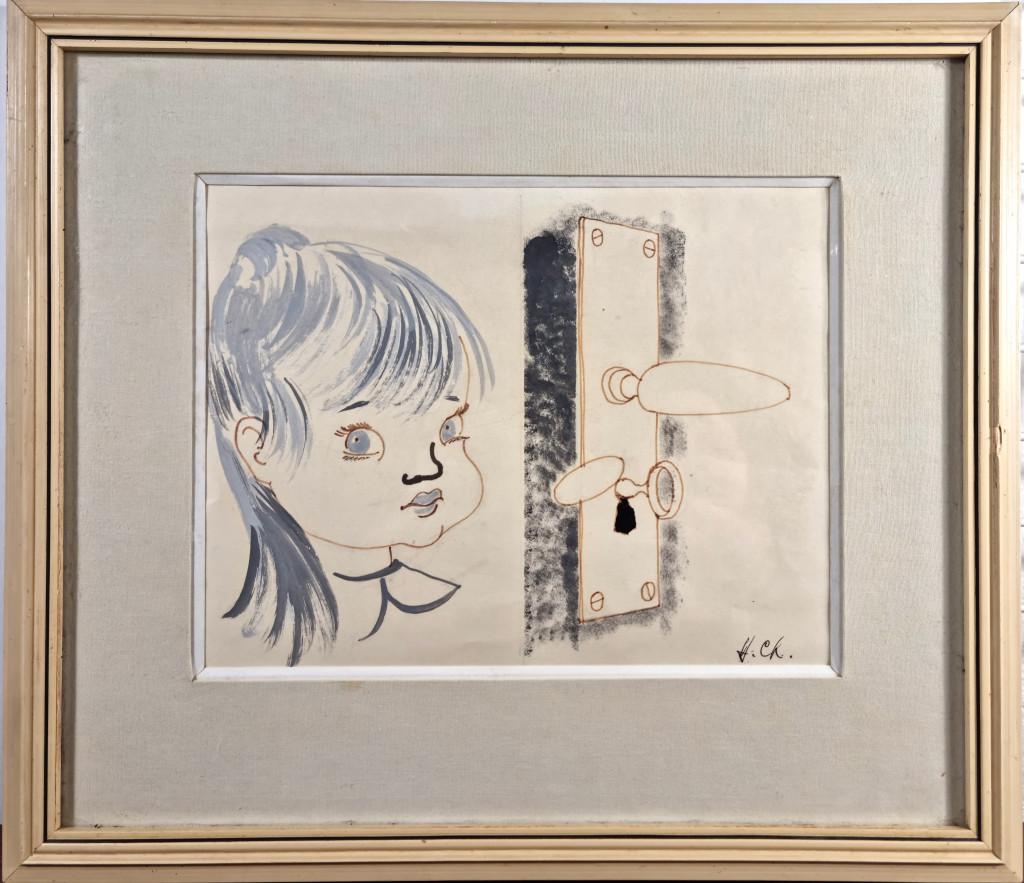 Dílo od autorky Trnkové je typické dětskými náměty a vlastní, osobitou stylizací. Jemně kolorované plochy střídá tenká linka. Námětem tohoto díla je tvář dívky a detail na kliku s klíčem v zámku, dílo působí lehce komiksově. Kombinovaná technika na papíře pod sklem, rozměry s rámem 42,5 x 37 cm, rozměry malby 27 x 21 cm. Signováno dole vpravo "H. Ch."