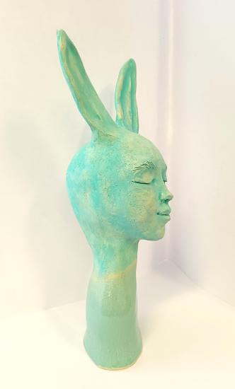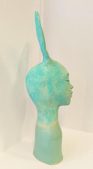 Keramická originální socha vypalovaná starodávnou magickou technikou Raku. Rozměry: výška 39 cm, šířka 10 x 7 cm, autorka Kristýna Tůmová.