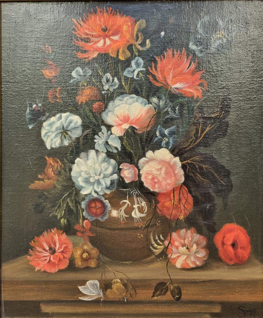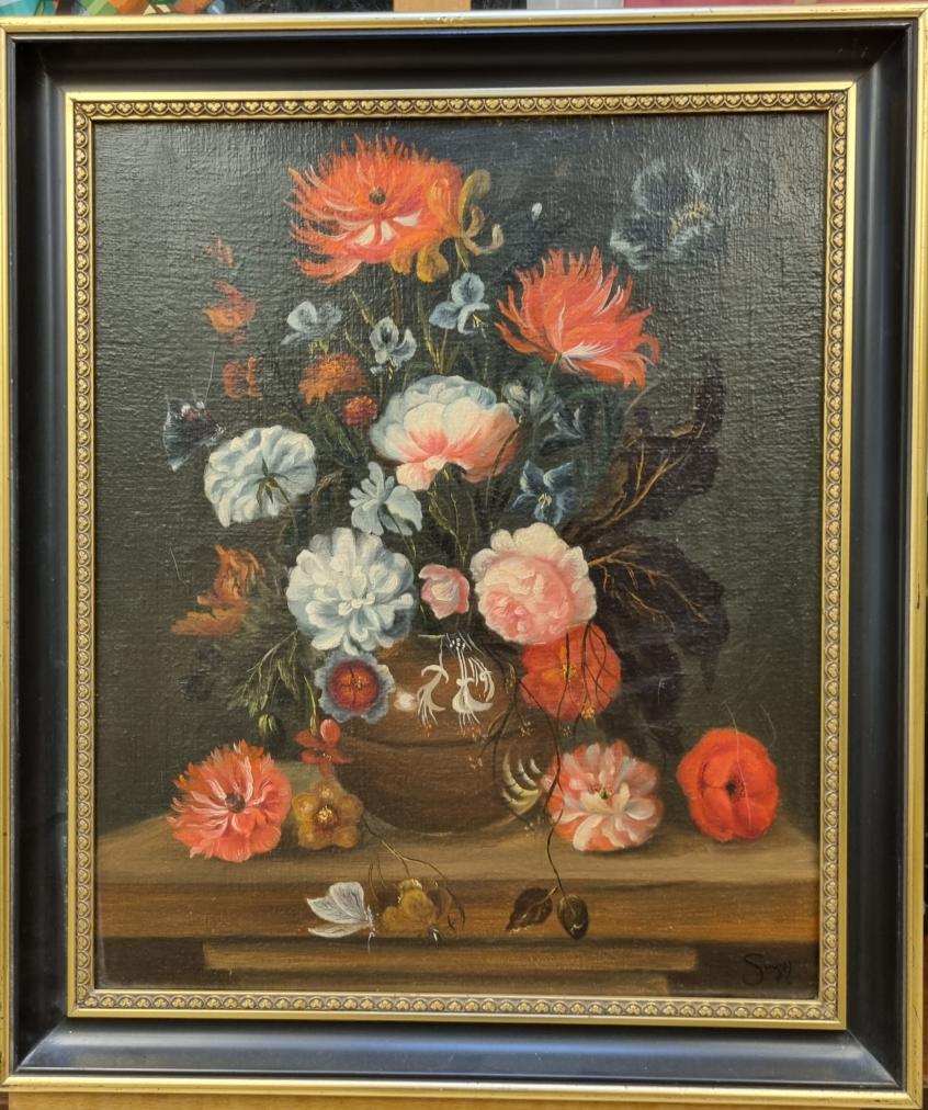 Obraz olej na plátně 49 x 59, 5 cm, včetně rámu 62 x 71 cm. Plátno nepoškozeno, rám novější. Signováno viz foto.