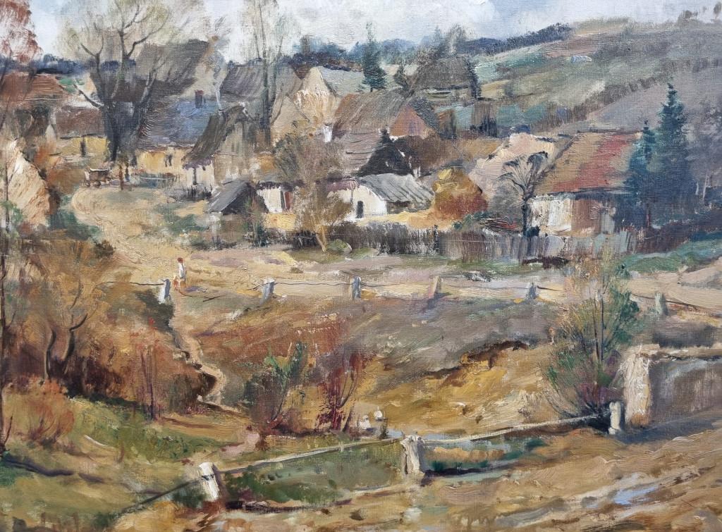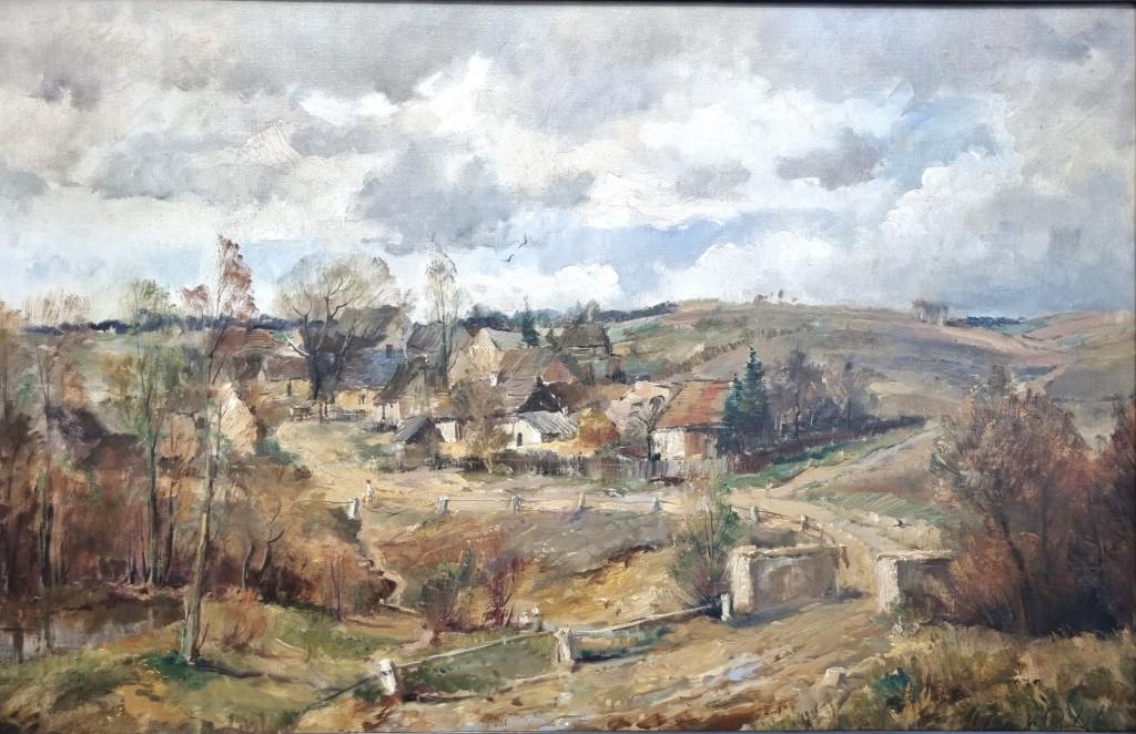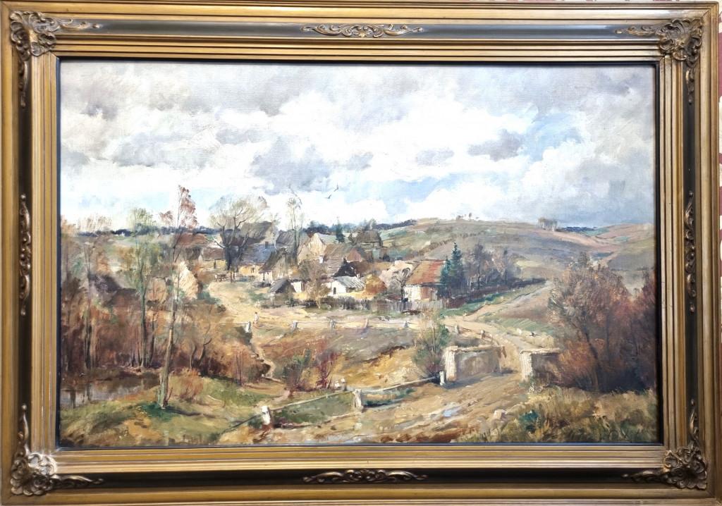 Nádherná velkoformátová malba provedena v zemitých tónech, od našeho uznávaného krajináře Josefa Procházky. Motivem se stává podzimní krajina, která se halí do typicky hnědých tónů, rozblácené cesty tu a tam protíná stéblo zelené trávy. Velmi krásný detail najdeme v podobě kaluží a rybníčků, na hladině se zrcadlí odrazy okolí i nebe. Rozblácené cesty ztvárňuje umělec za pomoci silného nánosu barvy, čímž dosahuje autentického vizuálu. Olej na plátně, rozměry s rámem 142 x 101 cm, rozměry malby 118 x 75 cm. Signováno vpravo dole "J. Procházka".
