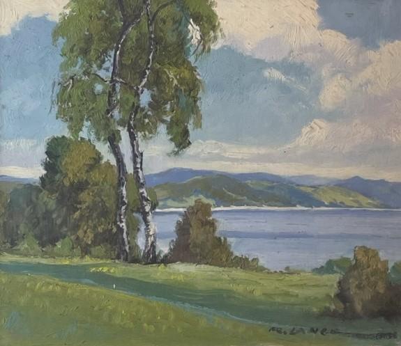 Rozměr díla 18 x 16 cm, včetně rámu 35 x 35 cm, olej na kartonu, za sklem, signováno v pravém dolním rohu "Fr. Langr" .