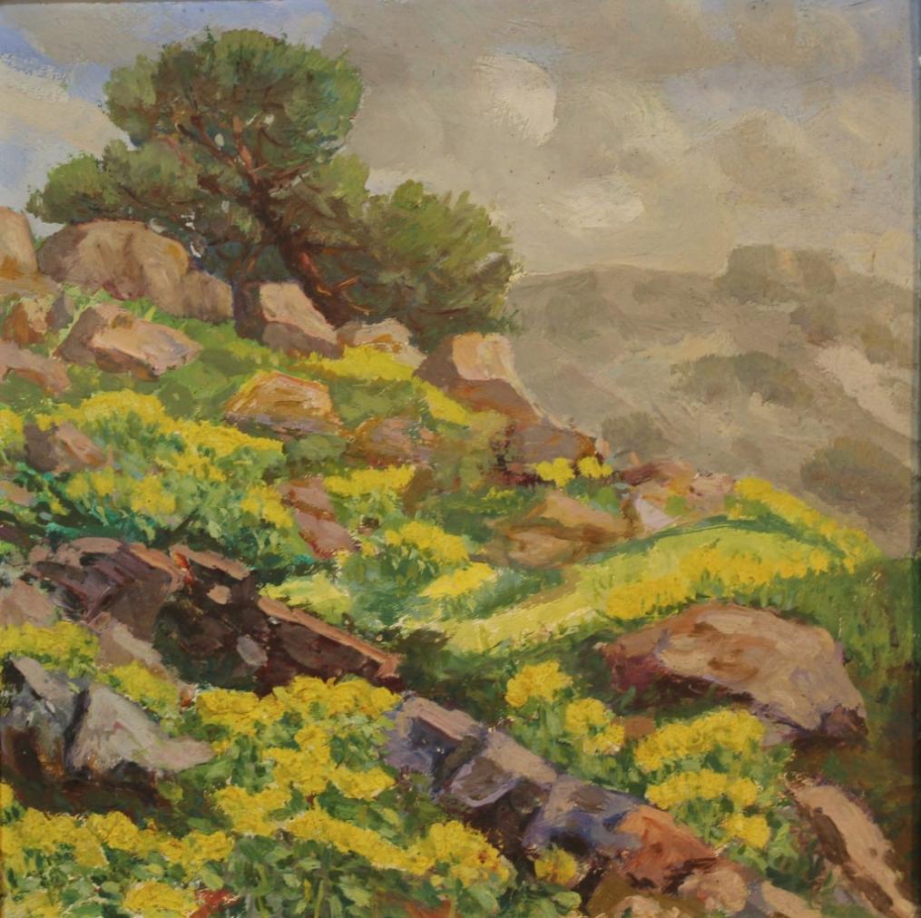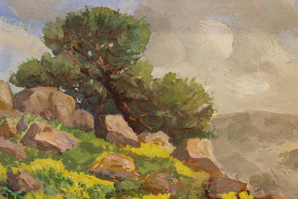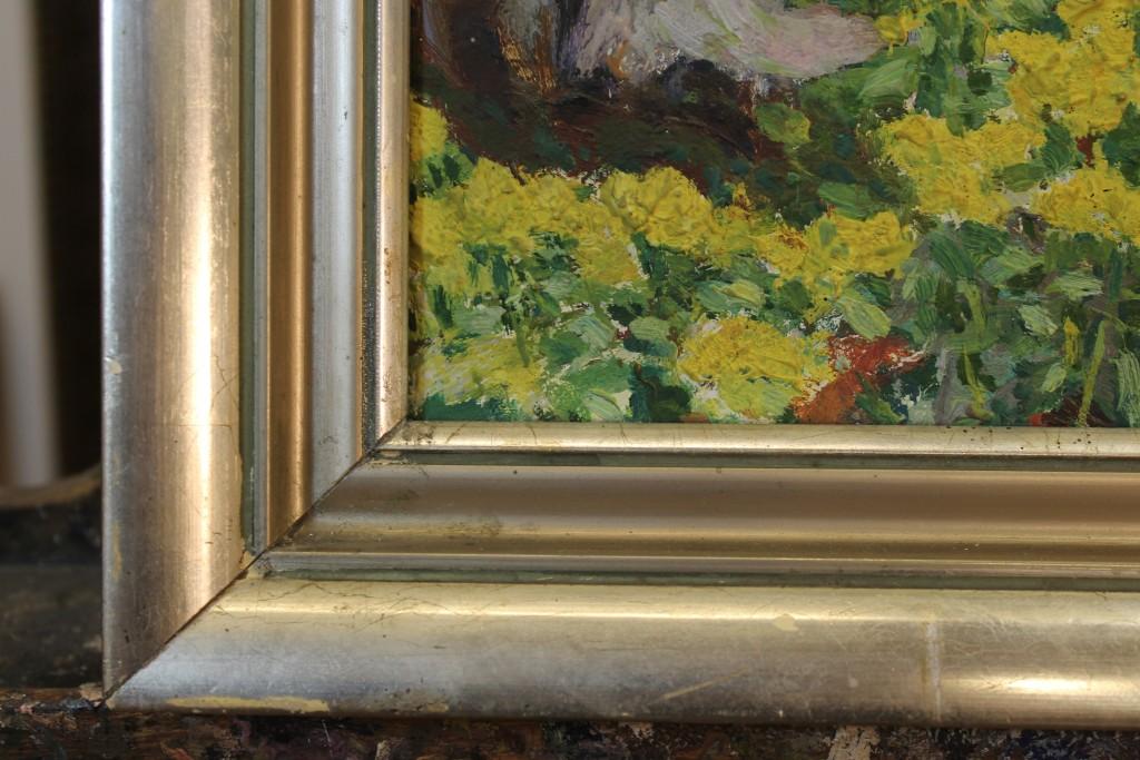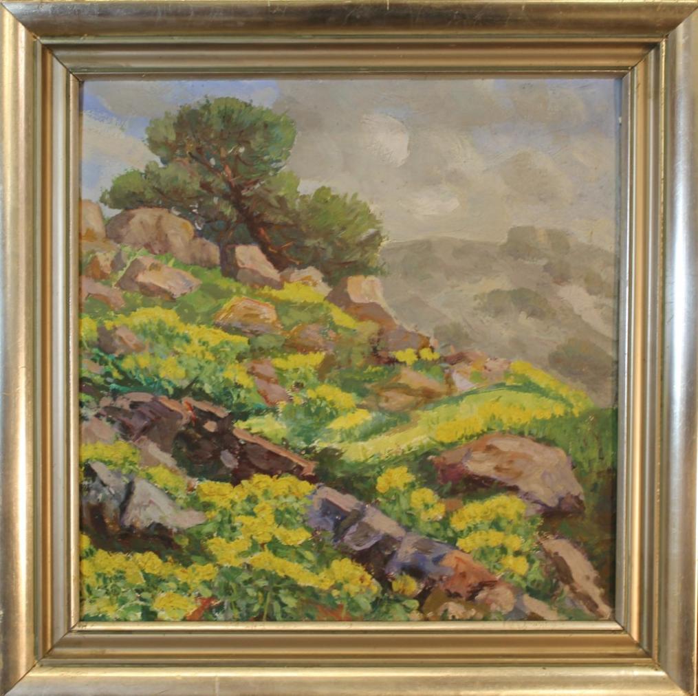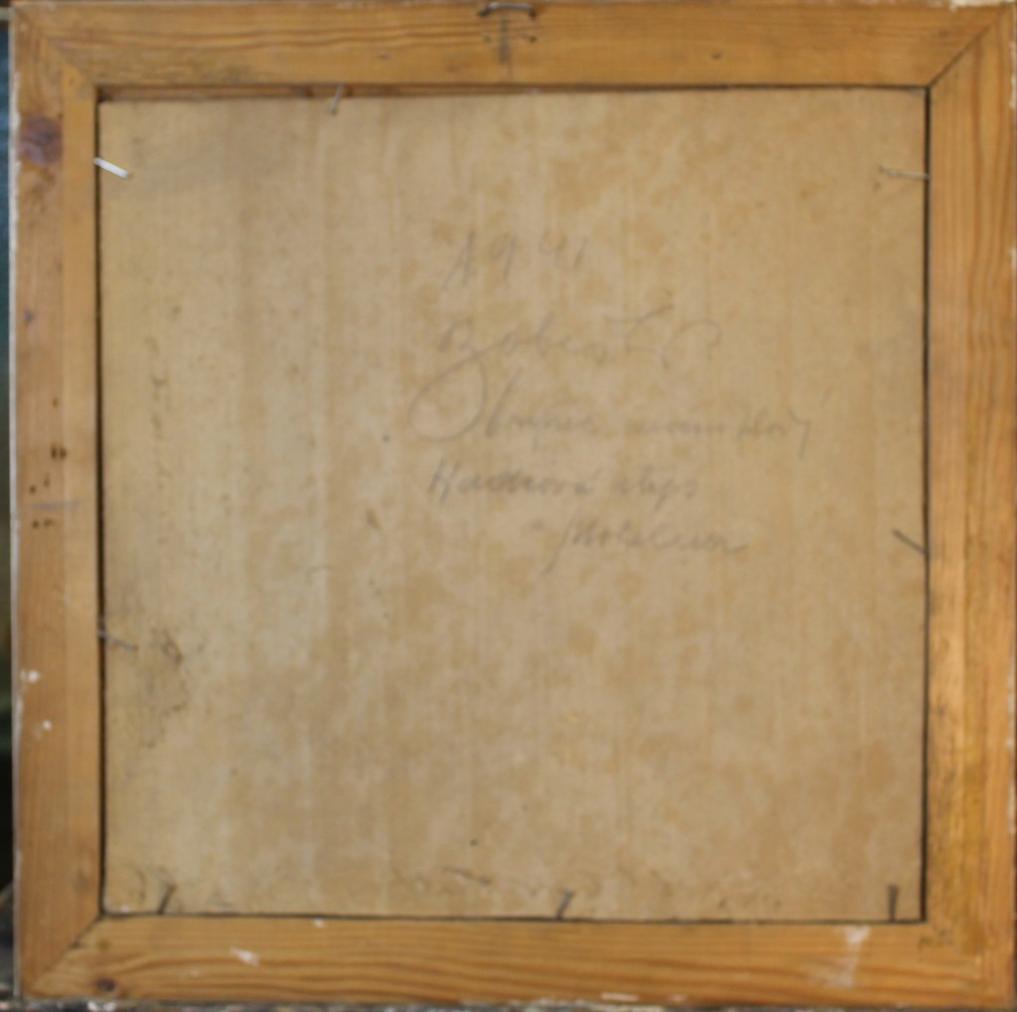 Olej na sololitu o rozměrech malby 34 x 34 cm, včetně rámu 43 x 43 cm. Signováno na zadní straně včetně popisu. 1941 Bobeš. Rám i malba ok.
