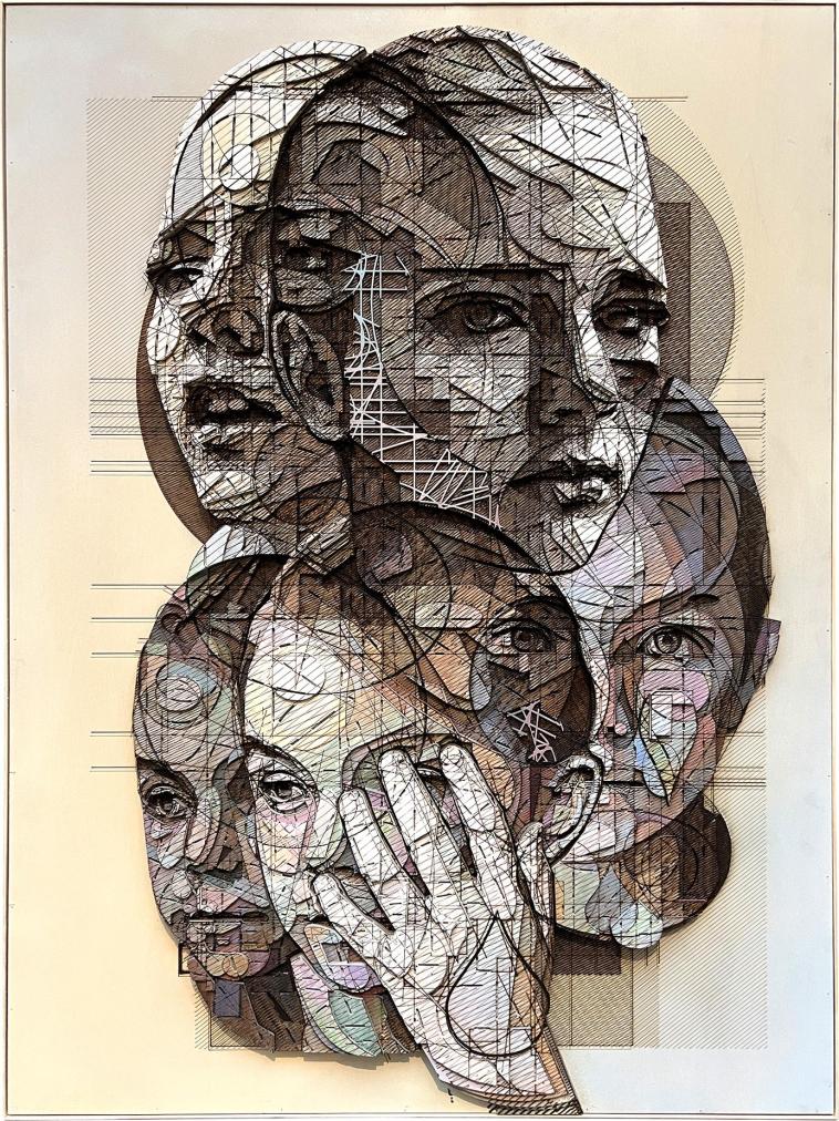 Dílo od české umělkyně Ivany Štenclové. Technika akryl na překližce, laser cut. Rozměry 120 x 90 cm. Rok vzniku 2025.