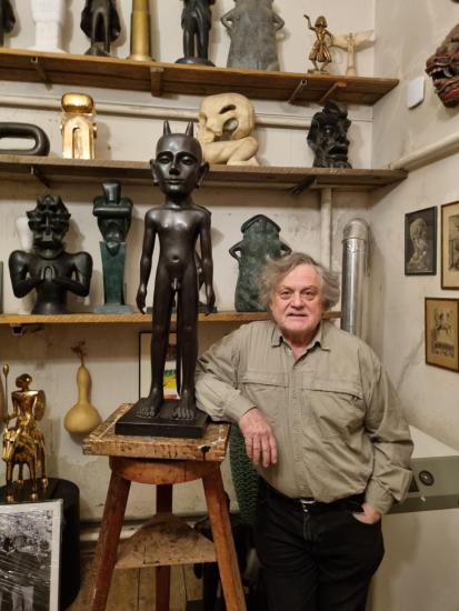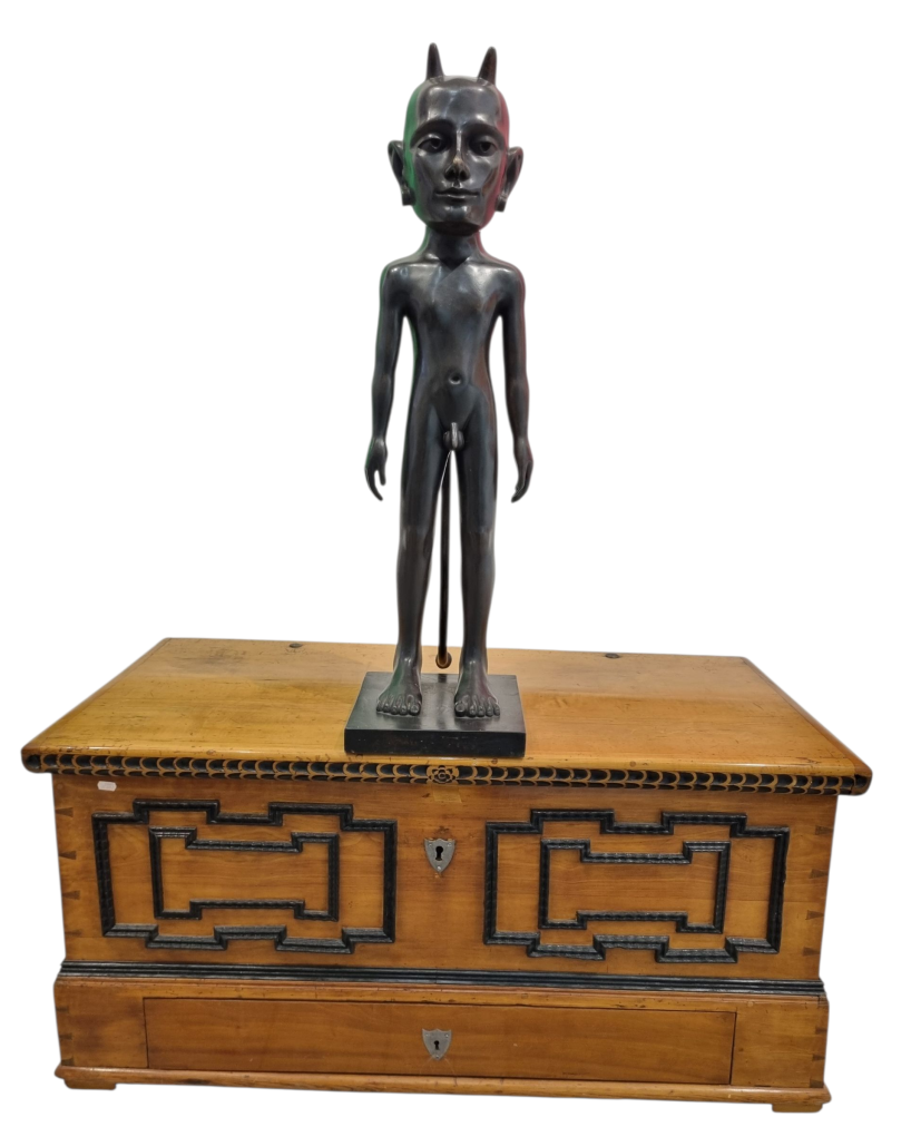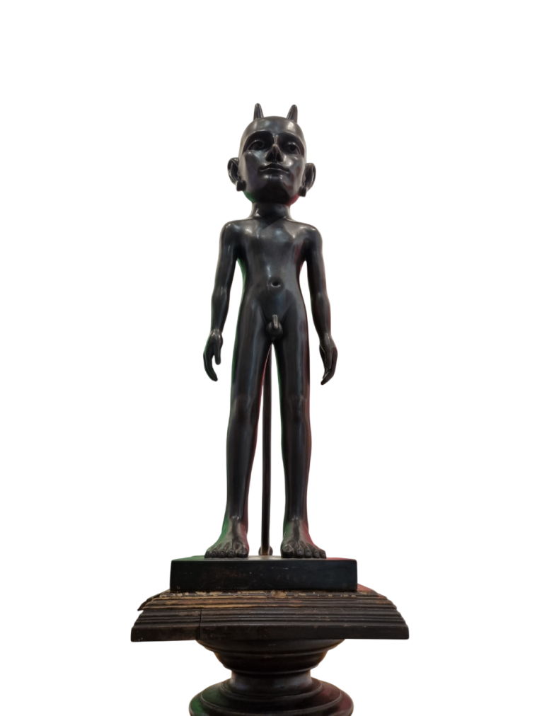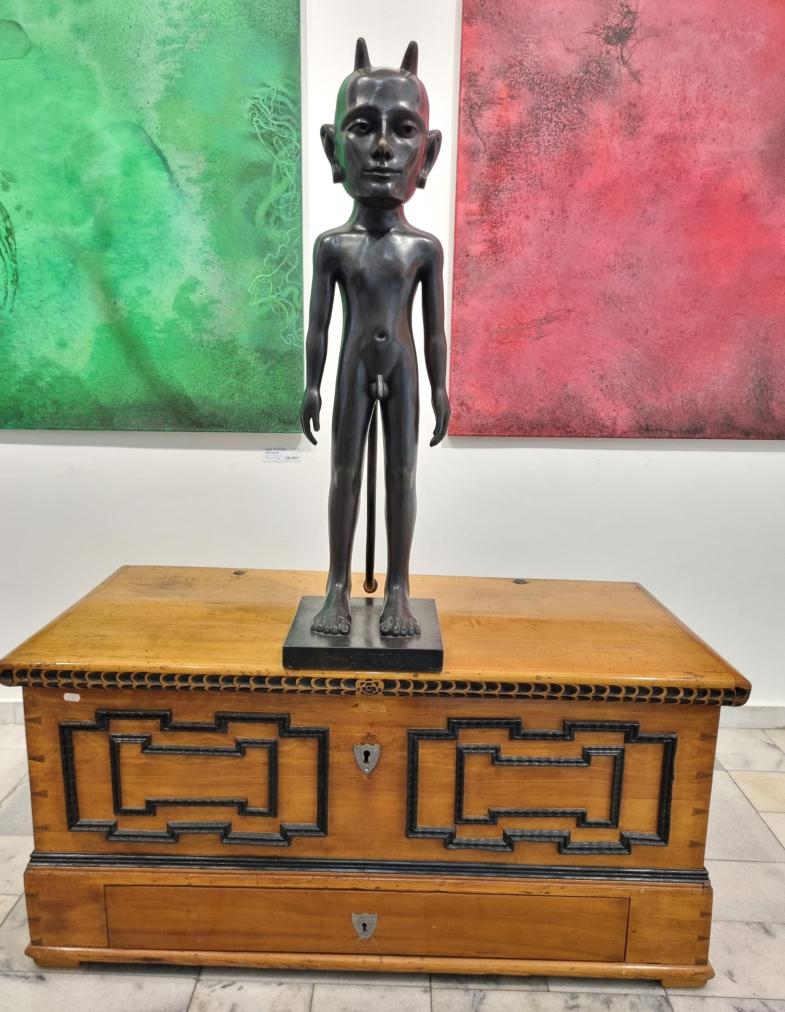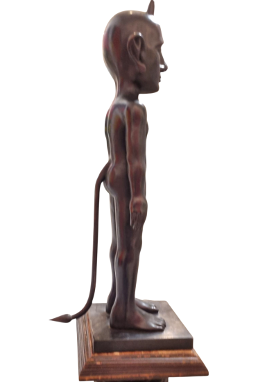Bronzová socha ,,Stojící čert,, je vysoká 80 cm, plus sokl 4 cm. Signováno RÓNA 09 + I. odlitek. Dílo pochází z ateliéru pana Róny, k dispozici je utorský certifikát.