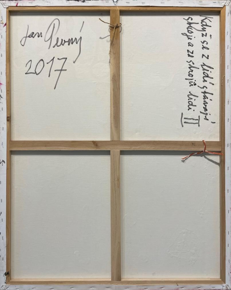 Rozměr díla 100 x 80 cm, bez rámu, olej na plátně, signováno na zadní straně "Jan Pokorný 2017" .