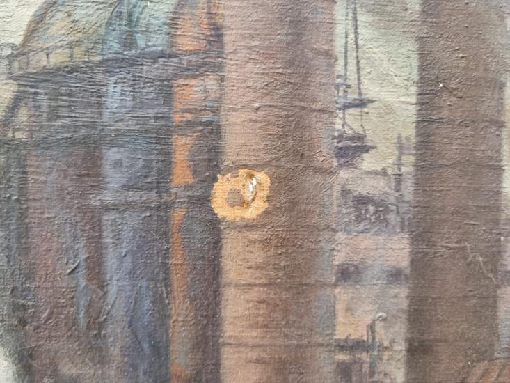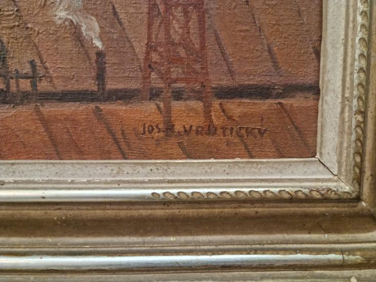 Olej na plátně, rozměr díla 60x52 cm, s rámem 77x67 cm. Signováno v pravém dolním rohu "Jos. K. Vrutický". Rámováno. Malba poškozena viz foto.