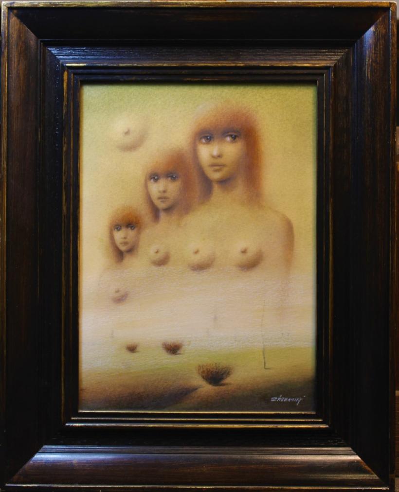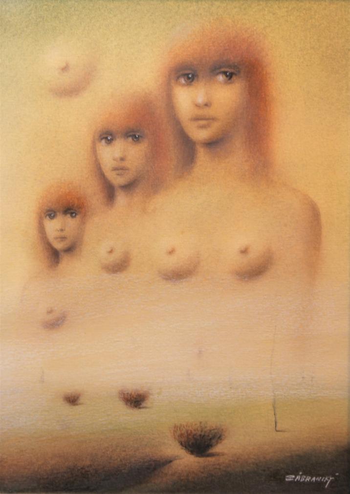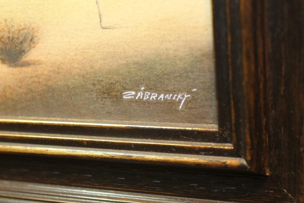 Obraz - kombinovaná technika pod sklem, rozměry malby 20 x 26 cm, včetně rámu 32 x 40 cm. Signováno Zábranský.