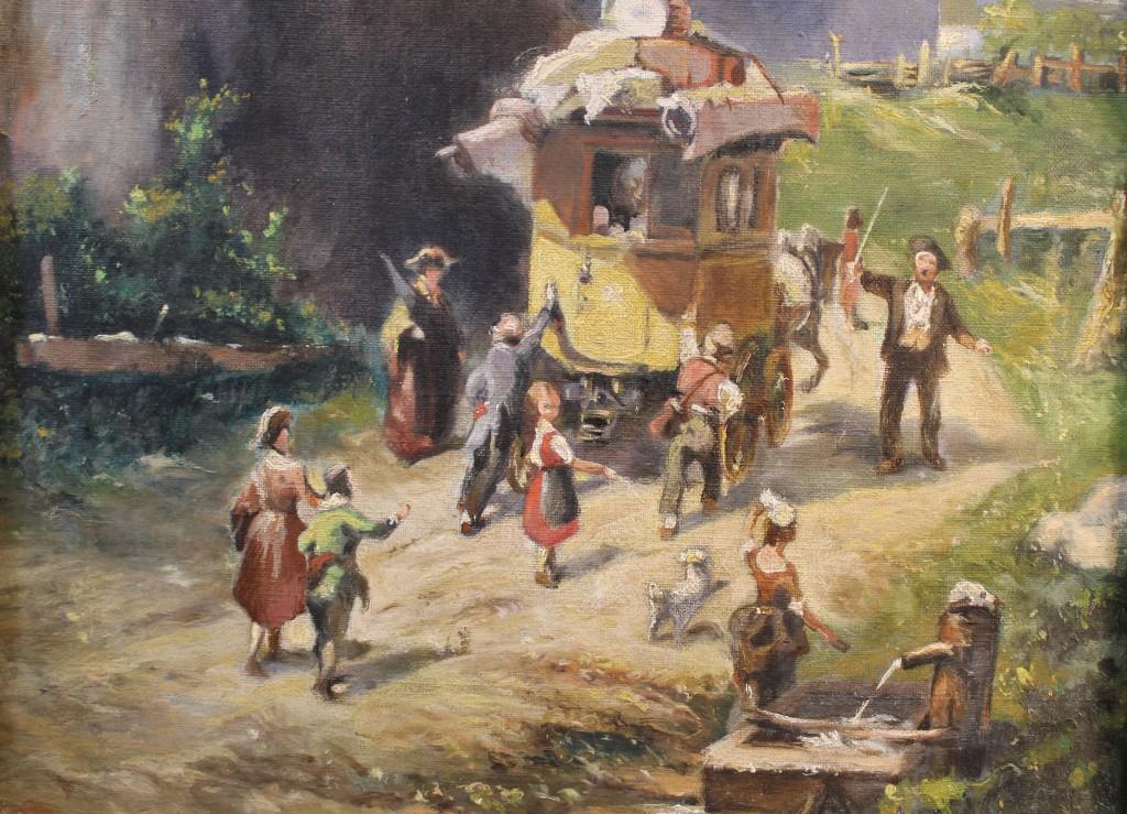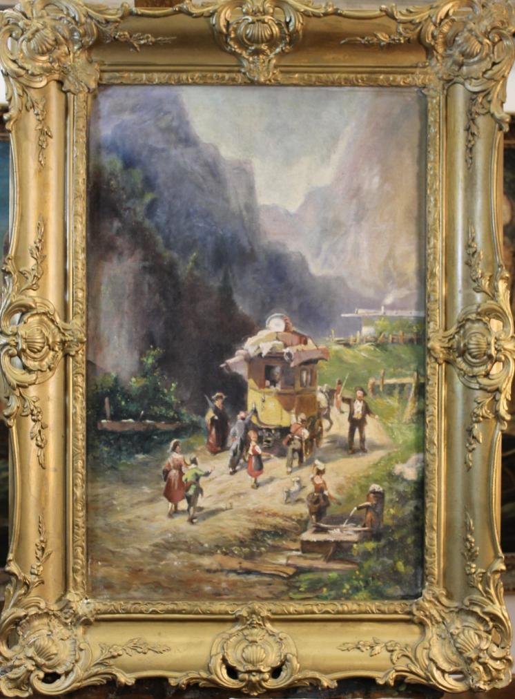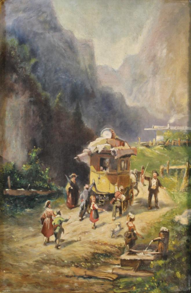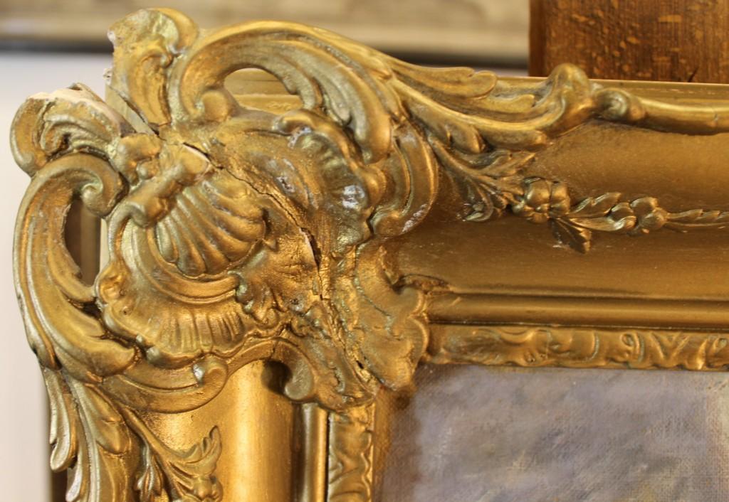Obraz olej na plátně o rozměrech malby 39 x 60 cm, včetně rámu 57 x 77 cm. Malba v dobrém stavu, rám poškozen viz foto. Nesignováno.