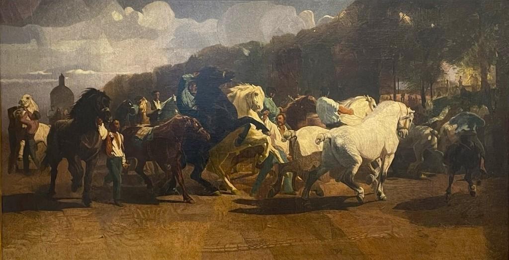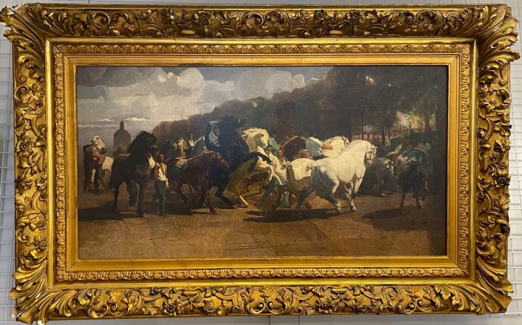 Rozměr díla 50 x 95 cm, včetně rámu 82x 125 cm, olej na plátně-podlepeno překližkou, nesignováno . Starožitný obraz se španělského prostředí, rok cca 1850. Rám lokálně poškozen.