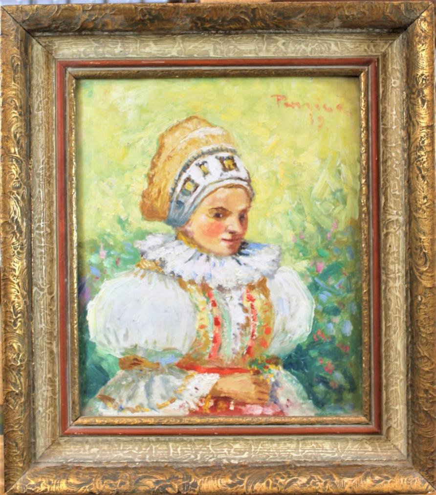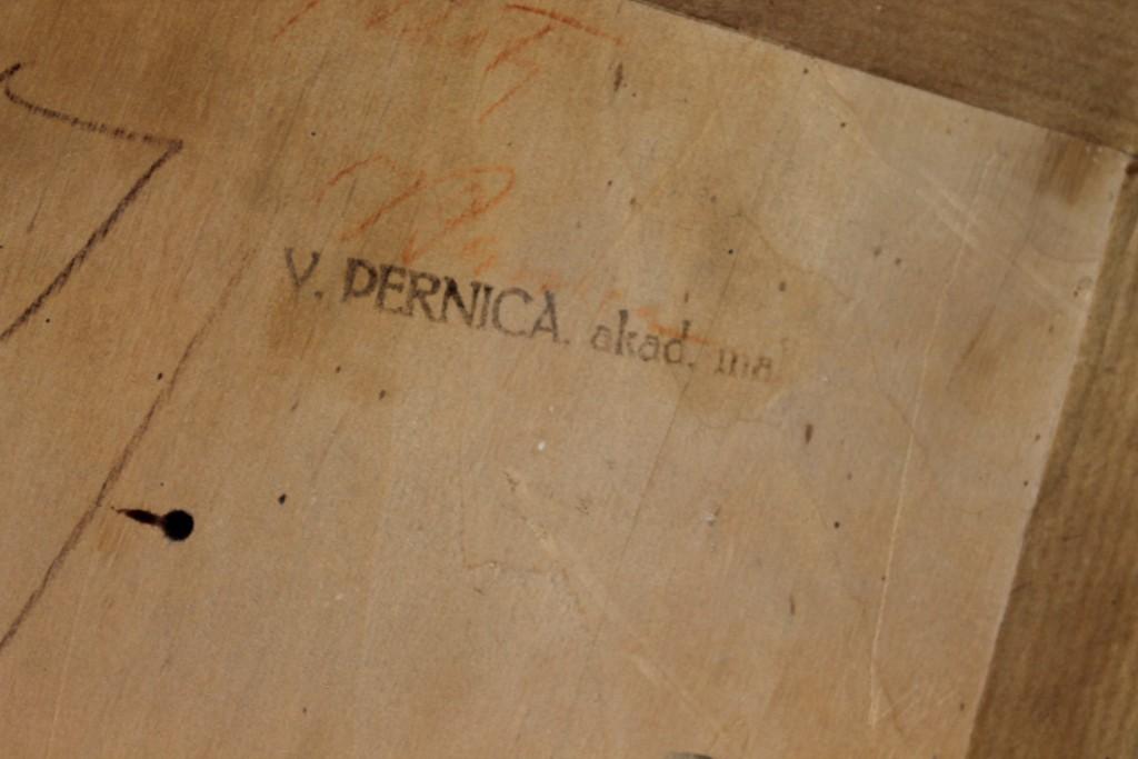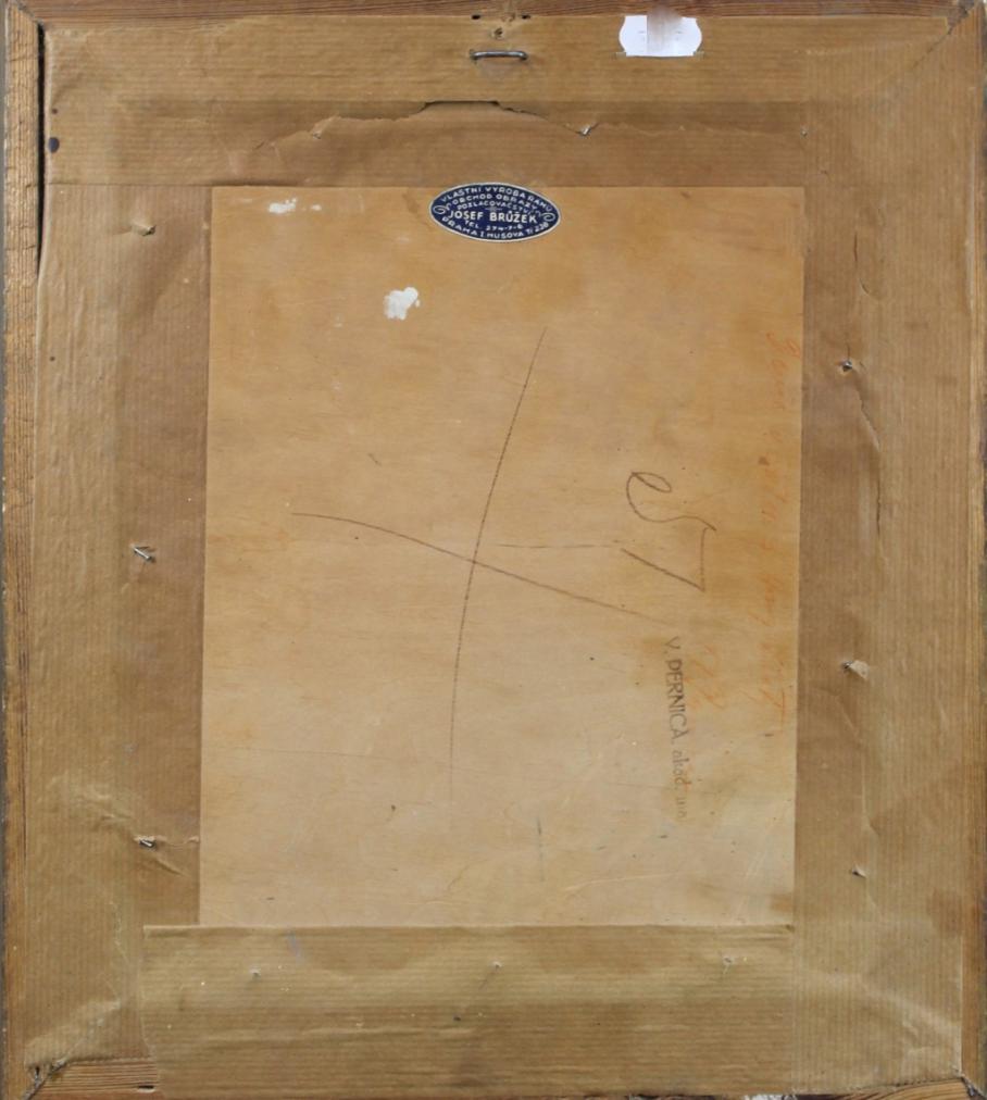 Obraz olej na papíře pod sklem o rozměrech malby 25 x 20 cm, včetně rámu 30 x 34 cm, signováno Pernica 39.