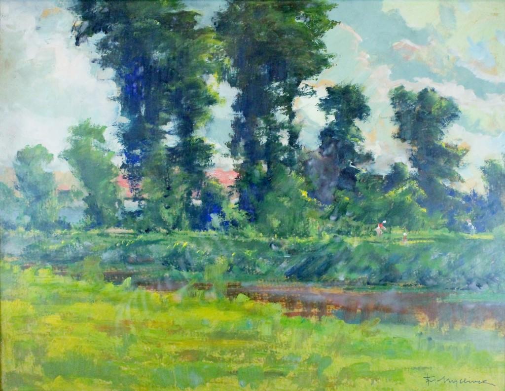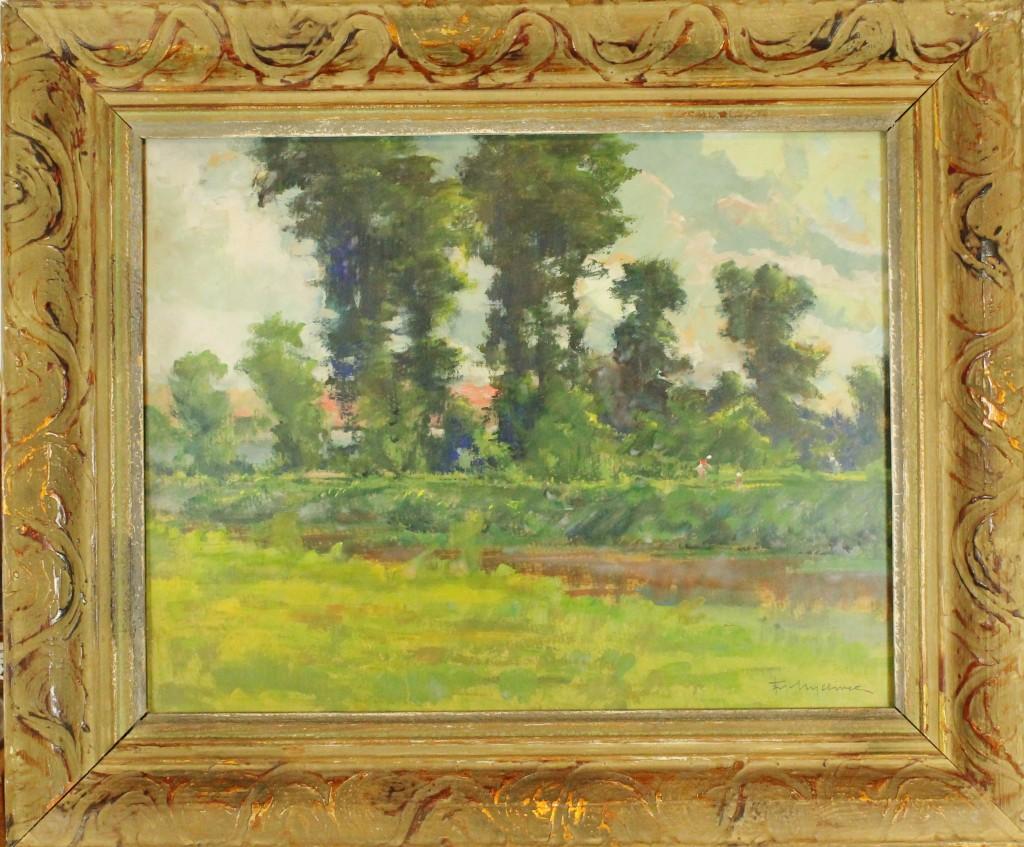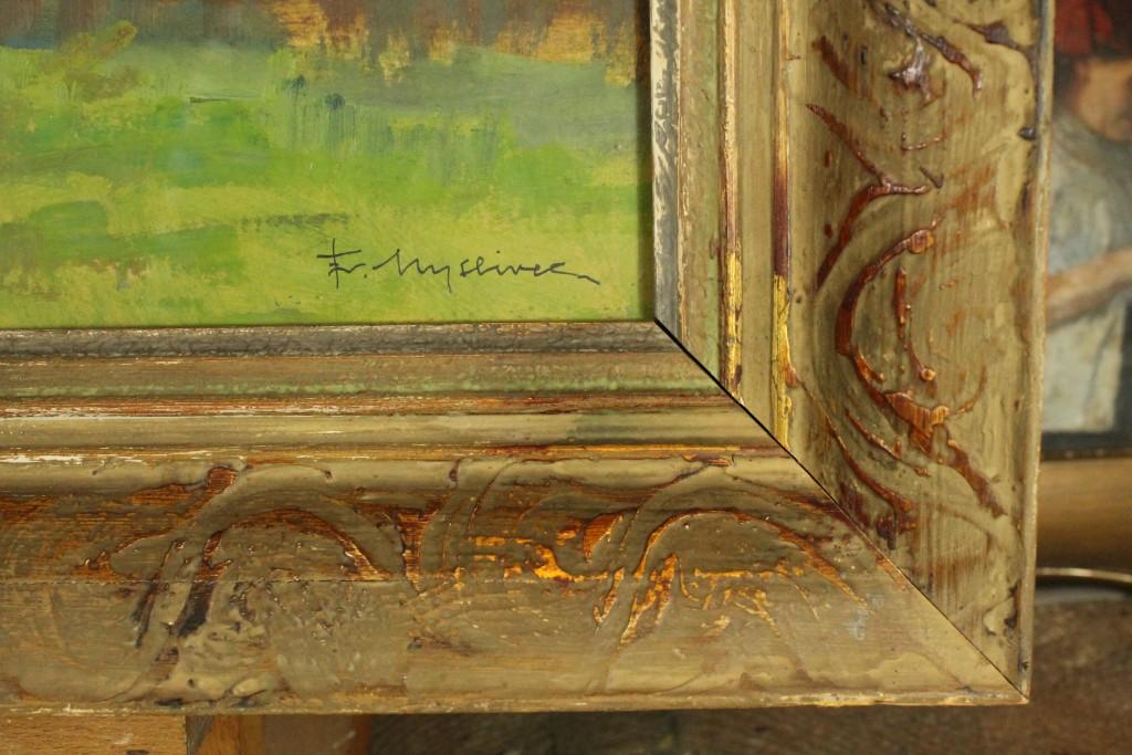 Olej na kartonu pod sklem je signován v PD, rám i malba ve výborném stavu. Myslivec.