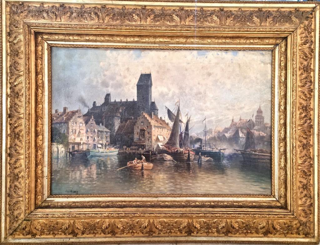 Obraz, olej na plátně o rozměrech malby 80 x 54 cm, rám 110 x 88 cm. Signováno viz foto. Druhá polovina 19. stol. Perfektní stav.