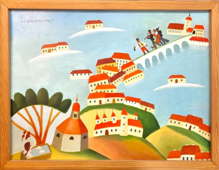 ,,Z pravé strany šuhaj,, A. Mikulka, olej na překližce, datace 1996.