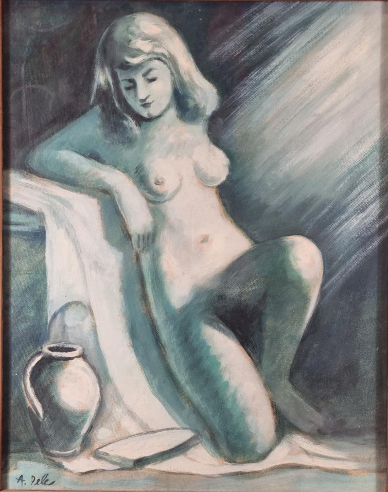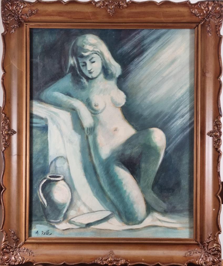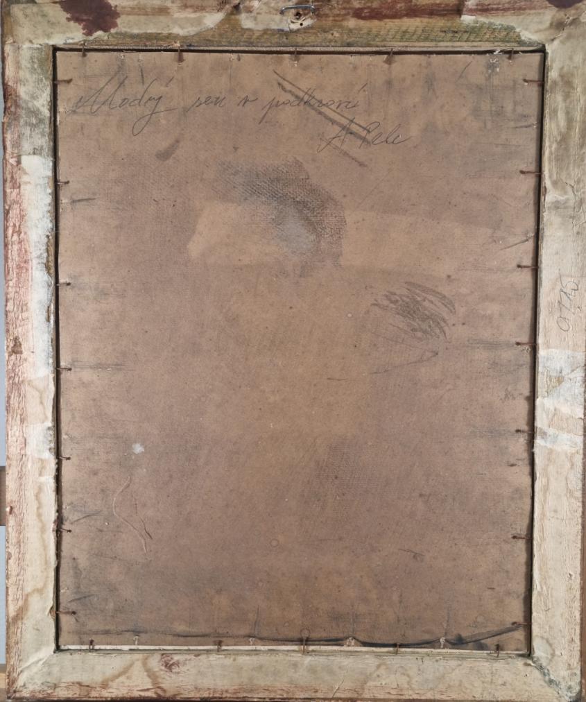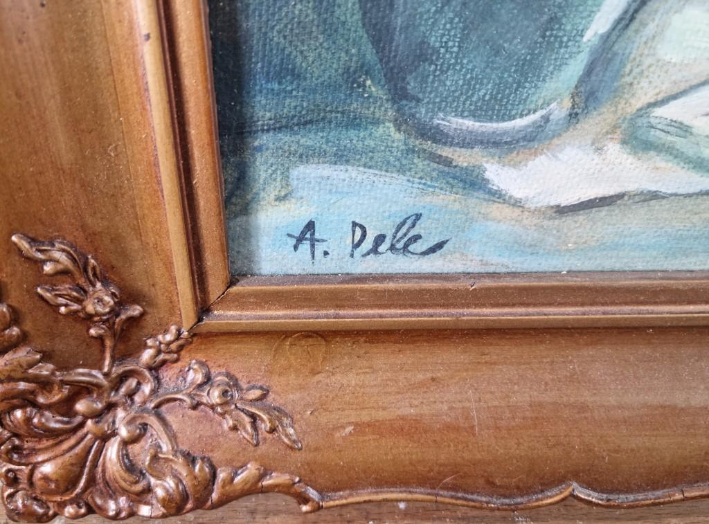 Kombinovaná technika na sololitu, rozměr díla 40x50 cm, s rámem 60x50 cm. Signováno v levém dolním rohu "A. Pelc". Rámováno, zaskleno. Rám poškozen.