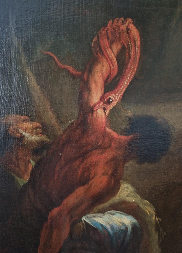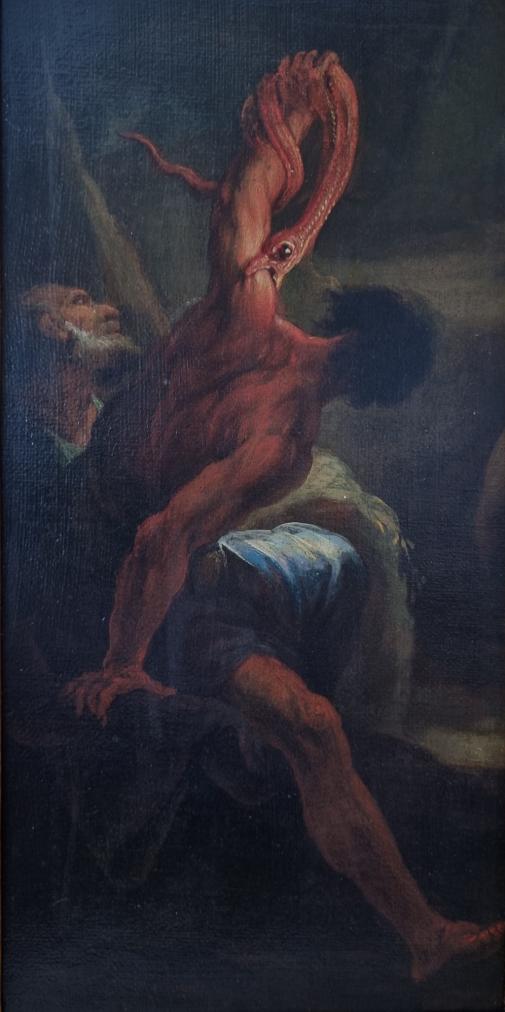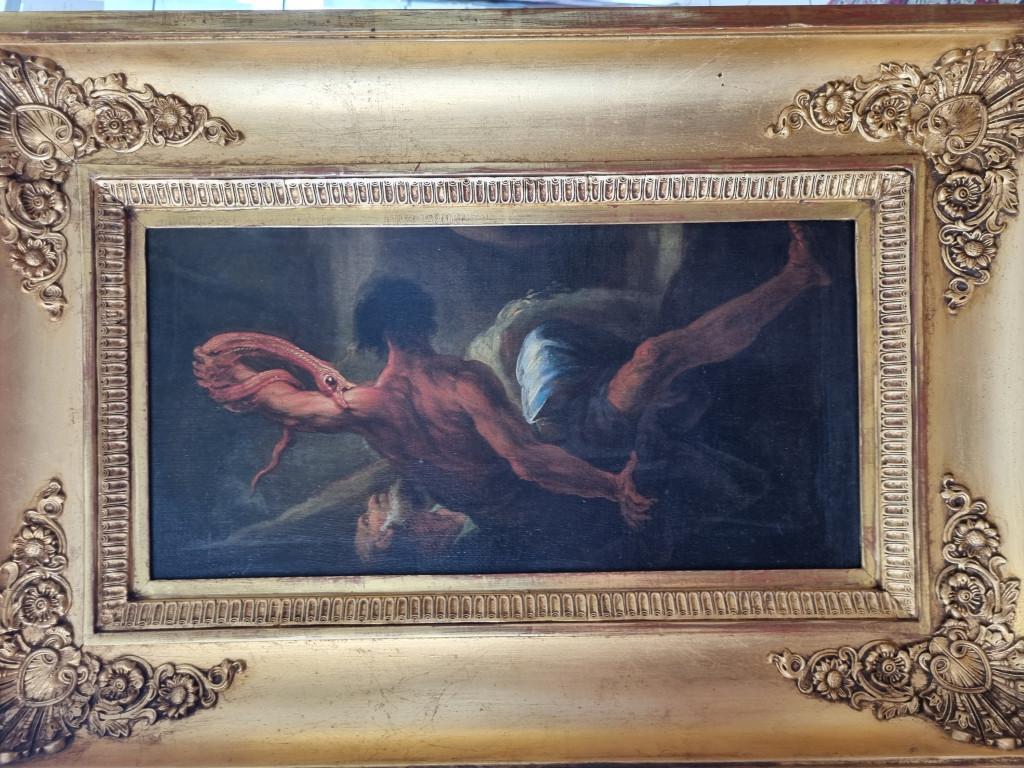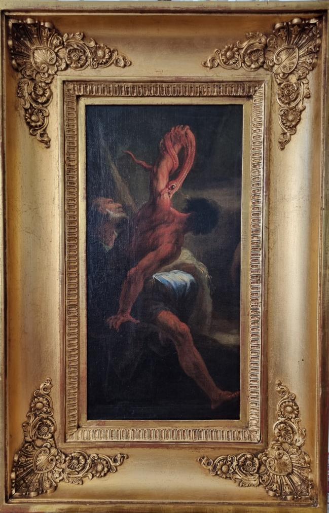 Obraz, olej na plátně, rozměr malby 22 x 42 cm, rám 42 x 64 cm. Střední Morava, přelom 17. a 18. století.