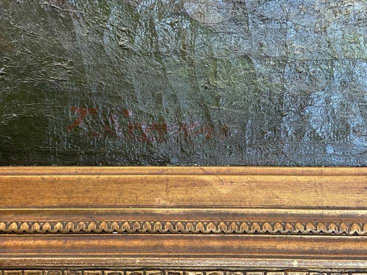 Rozměr malby 89 x 59 cm, rozměr rámu: 121 x 91 cm, olej na plátně ,signováno v pravém dolním rohu - nerozpoznáno