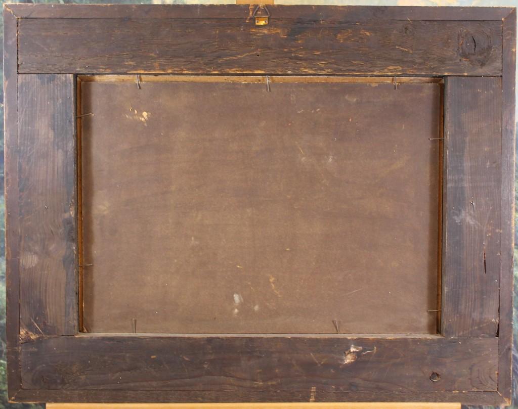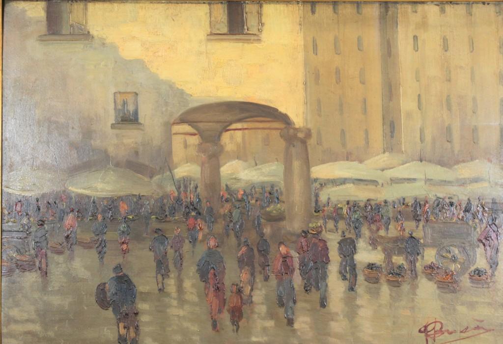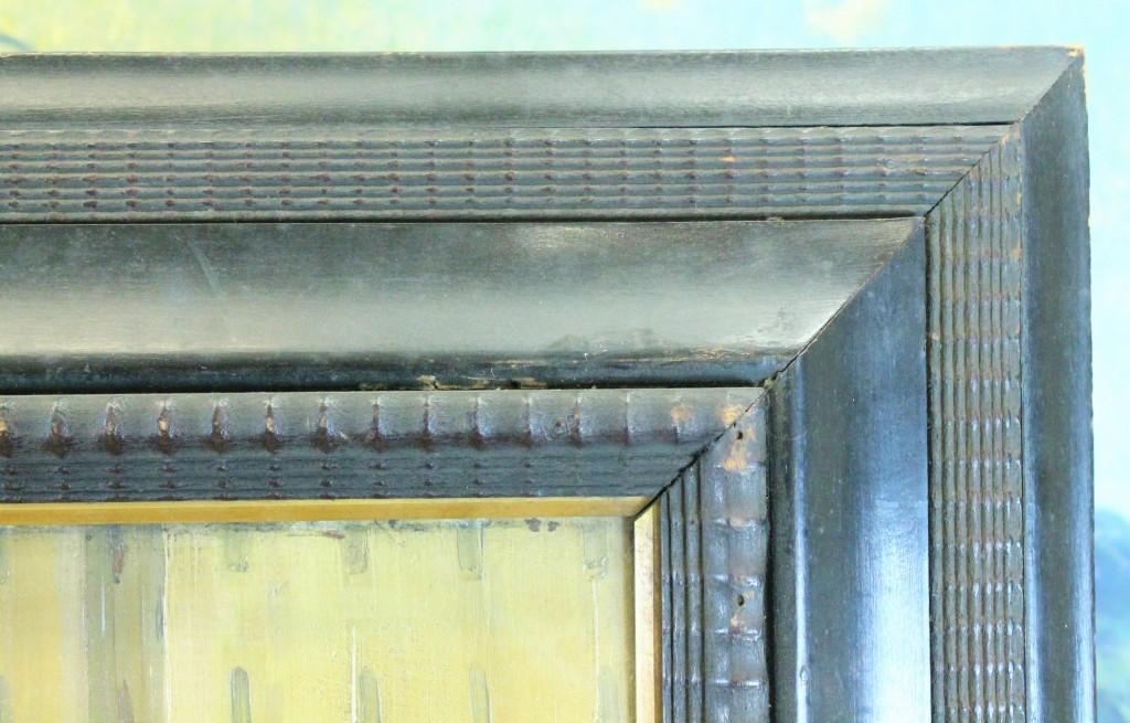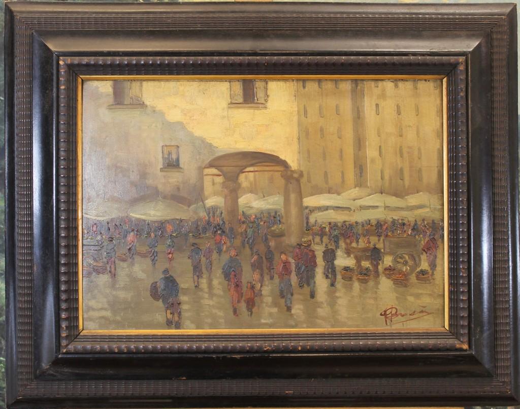 Olej na kartonu o rozměrech malby48 x 34 cm , včetně rámu 69 x 57 cm, signatura nečitelná.