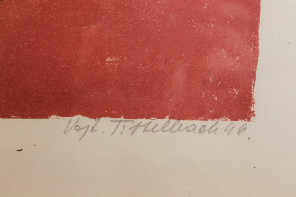 Barevná litografie na papíře pod sklem o rozměrech: 32x29 cm, včetně rámu: 54x61cm. Signováno Vojt. Tittelbach 46.