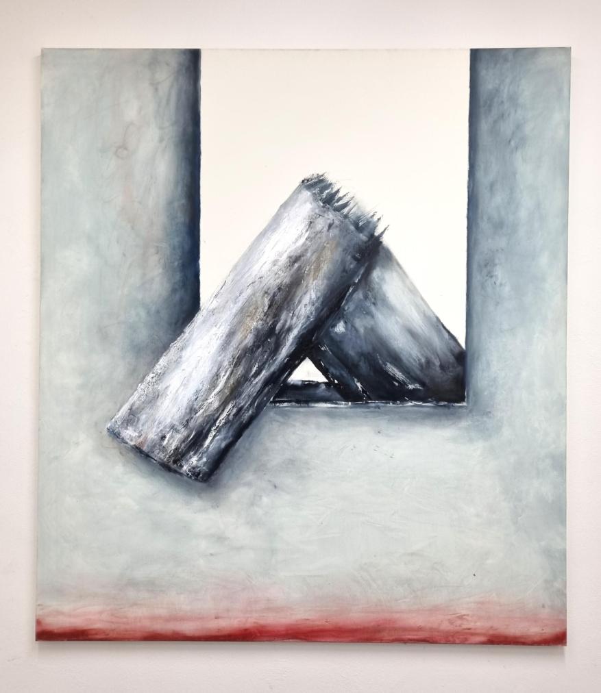 Opouštěcí skok, 2024 , 180 x 160 cm, olej na plátně, signováno na zadní straně O. Tichý