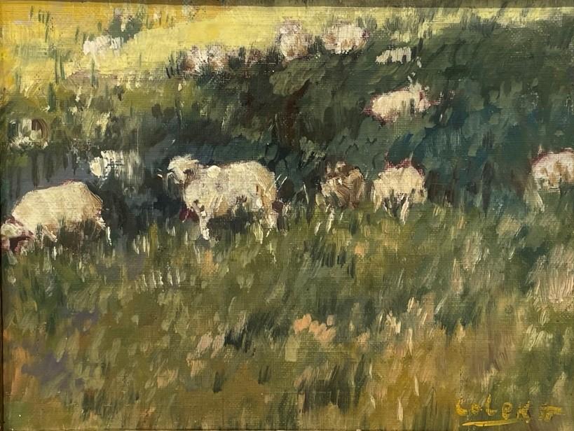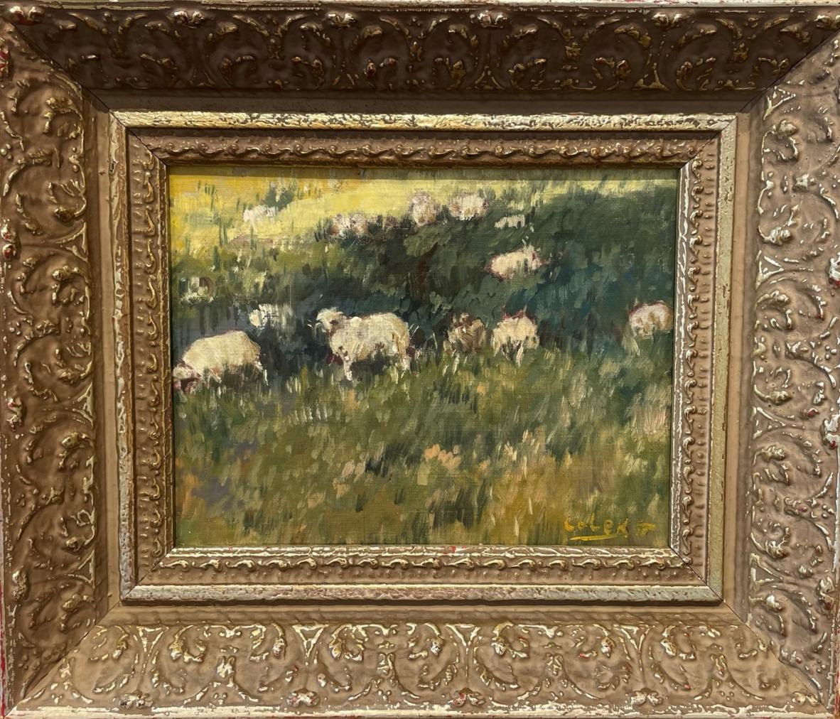 Obraz o rozměrech malby 24 x 18 cm, včetně rámu 39 x 34 cm, olej na plátně- sololitu, signováno v pravém dolním rohu "Lolek 55".
