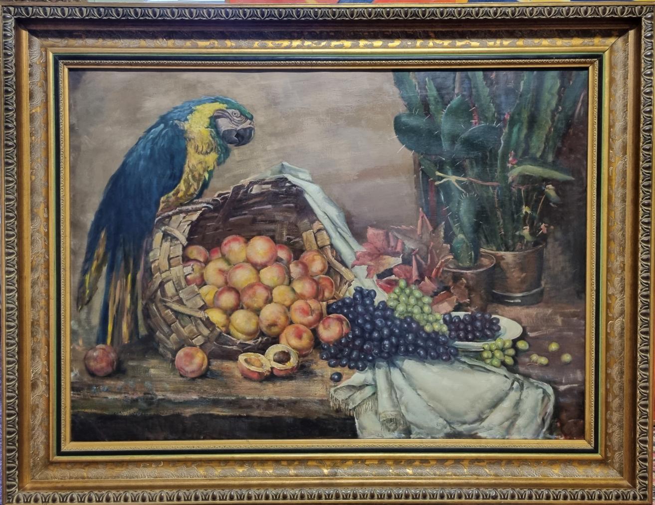 Papoušek a broskve
