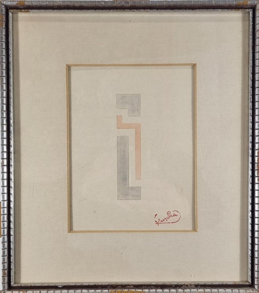 Akvarel na papíře pod sklem, rozměry díla 18x24 cm, s rámem 36x41 cm. Signováno v pravém dolním rohu "Kupka".
