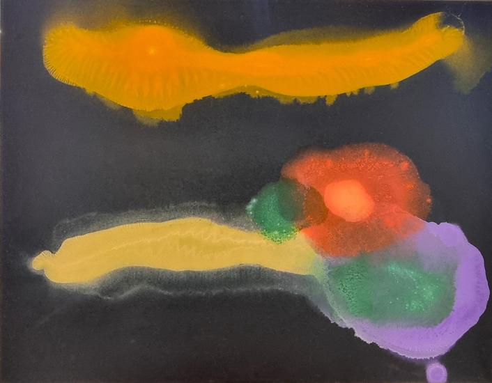 Jan Pištěk, V hlubinách I., 70 x 90 cm, akryl na plátně. Obraz je součástí diptychu, lze koupit i samostatně za 120.000 kč. V případě koupi obou je cena 200.000 kč.