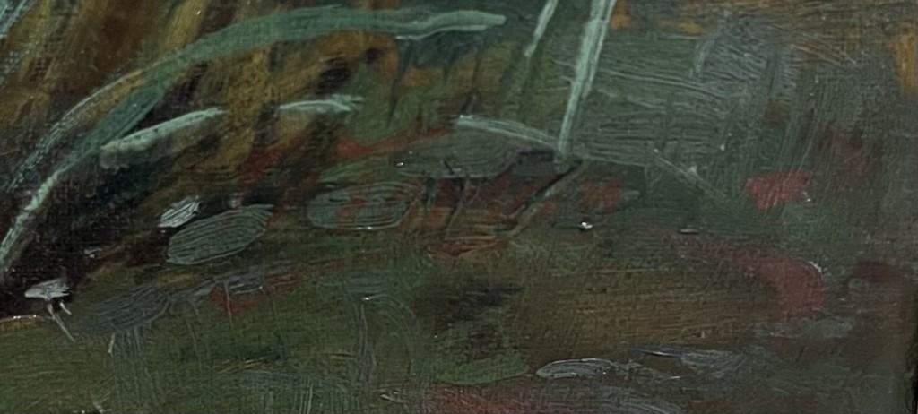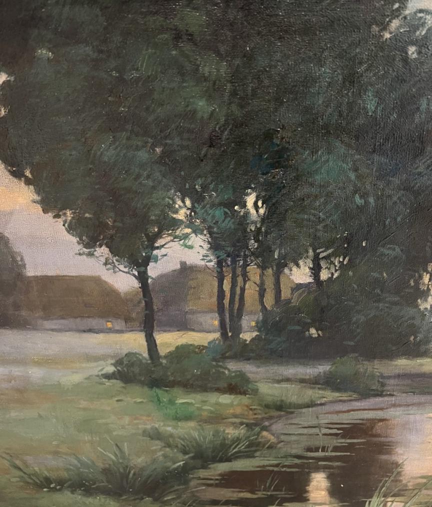 Podvečerní krajina, signováno František Toman, olejomalba na plátně, rozměr s rámem 88 x 68 cm, rozměr malby 73 x 54 cm.