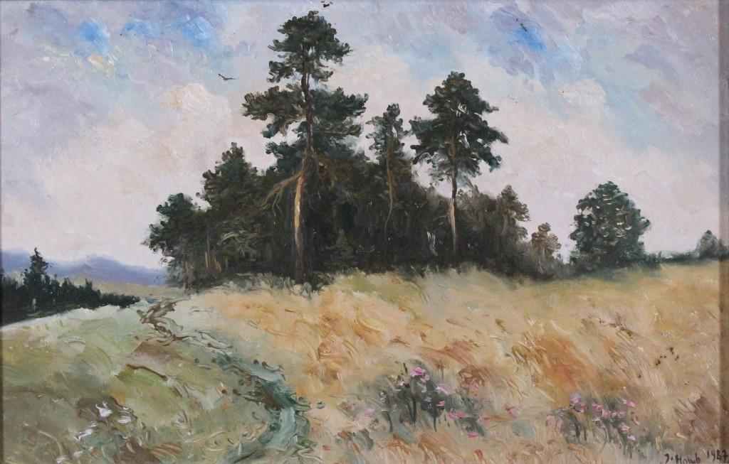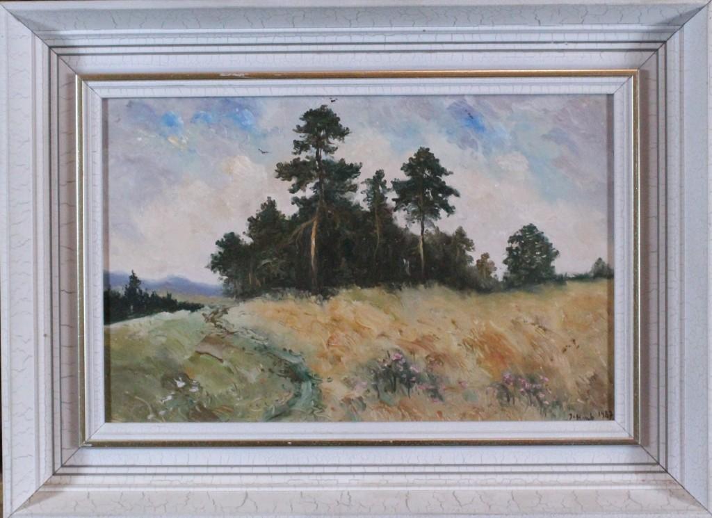 Olej na sololitu o rozměrech malby 28 x 18 cm. Signováno J. Holub 1987. Vše v perfektním stavu.