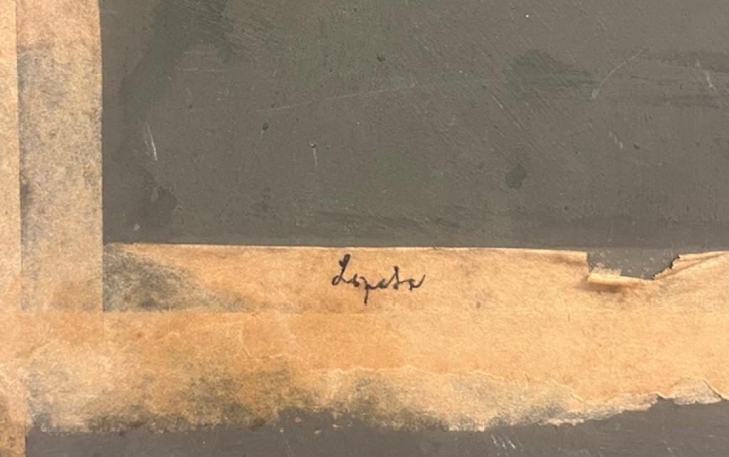 Tajemný portrét zadumaného muže z profilu v mistrné kvalitě. Autor zpodobnil model v pološeru, díky čemuž mohl zachytit hry světel a stínů, dávající vyniknout unikátních osobitých rysů tváře. Rozměry malby 37 cm na výšku x 39 cm na šířku. Olej na plátně, přilepeno na kartonu. Nesignováno.